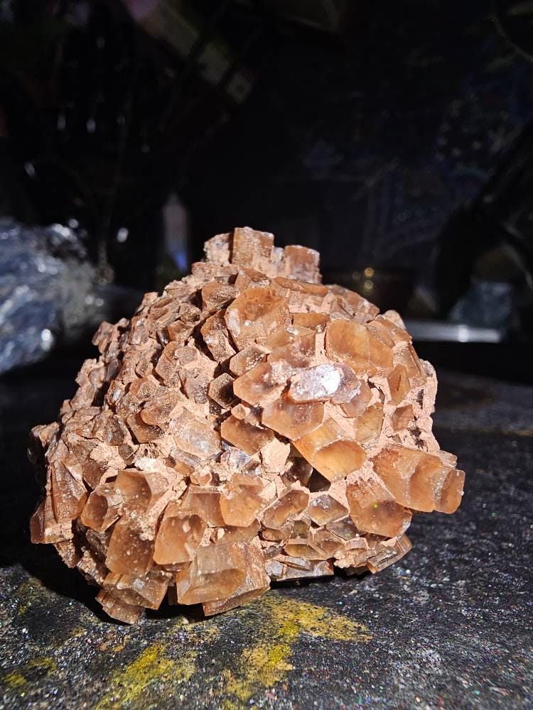Stunning Aragonite Clusters from Morocco. These beautiful clusters are truly breathtaking specimens. Ranging from a deep burnt orange, dark vermilion red, all the way to a light Apricot coloration each crystal offers a wide spectrum of diversity. Some clusters may have a more solid coloration throughout while others will have little bit of everything. The structure and shape of Aragonite almost begs to be explored as you rotate it in your hand every distinctive angle leaves you with a true feeling of awe how our Earth can create such perfection.