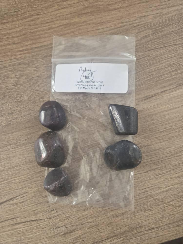 Ruby Tumble Stones, assorted sizes with most averaging between 0.75" and 1" in size. Ruby tumbled stones are strongly associated with the Heart Chakra. These powerful stones are believed to be wonderful 'heart healers', bring emotional balance and perspective to the user and strengthening one's ability to receive and give love. In addition Ruby is noted as a stone of prosperity. The 'Stone of Kings' Ruby is associated throughout history with wealth, nobility and is also known as a stone of protection. Natural Ruby always comes with imperfections (see posted pictures) - color impurities and inclusions.