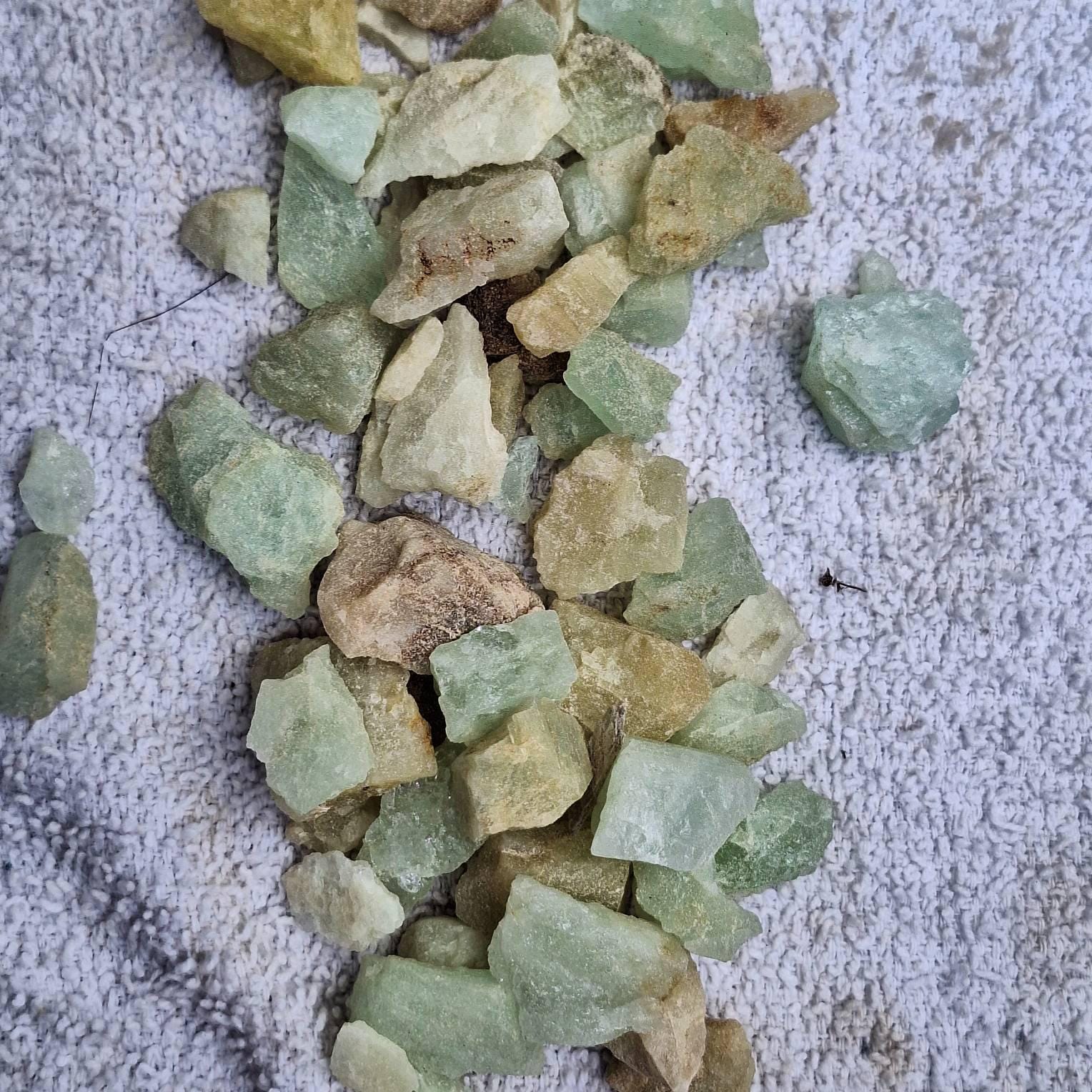 Wow. A big fistful of awesome aquamarine pieces. This shop rocks. Never any issues when buying here. Very helpful and knowledgeable owners. Can't wait to polish these up. I love aquamarine.