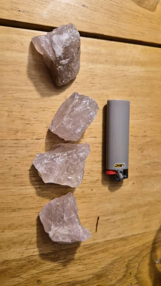 Bargain CLEARANCE Lots of Large Natural Rough Rose Quartz, B/C Grade, size between about 1" to 3", from Brazil - at a crazy cheap price. These pieces have been accumulated over time - crystals that just didn't make the cut. These stones are still beautiful in their own way but they lack the coloration of their higher quality counter parts - light pink or almost clear. metaphysical properties are the same as the 'A' grade material so these crystals still have a very wide variety of uses.
