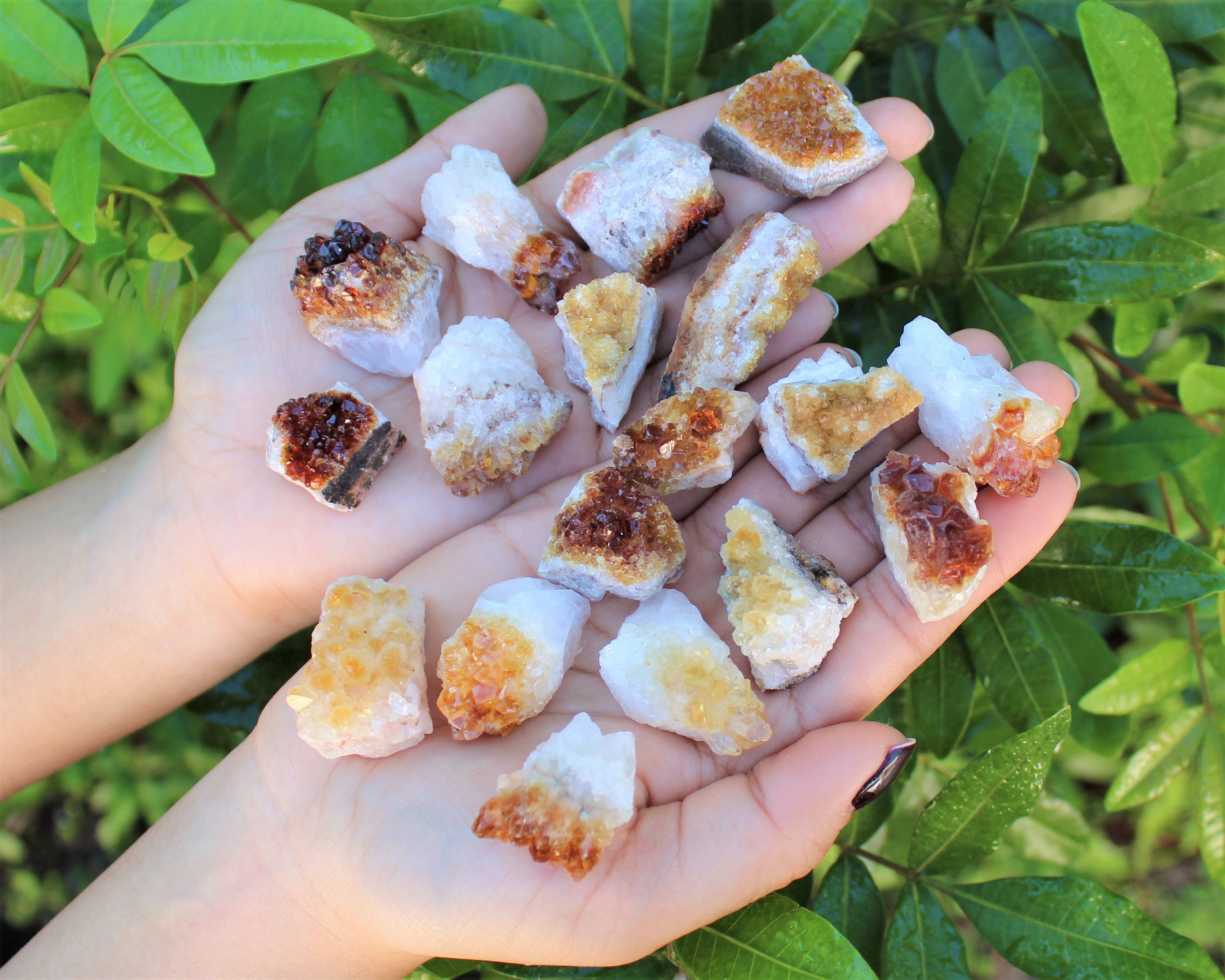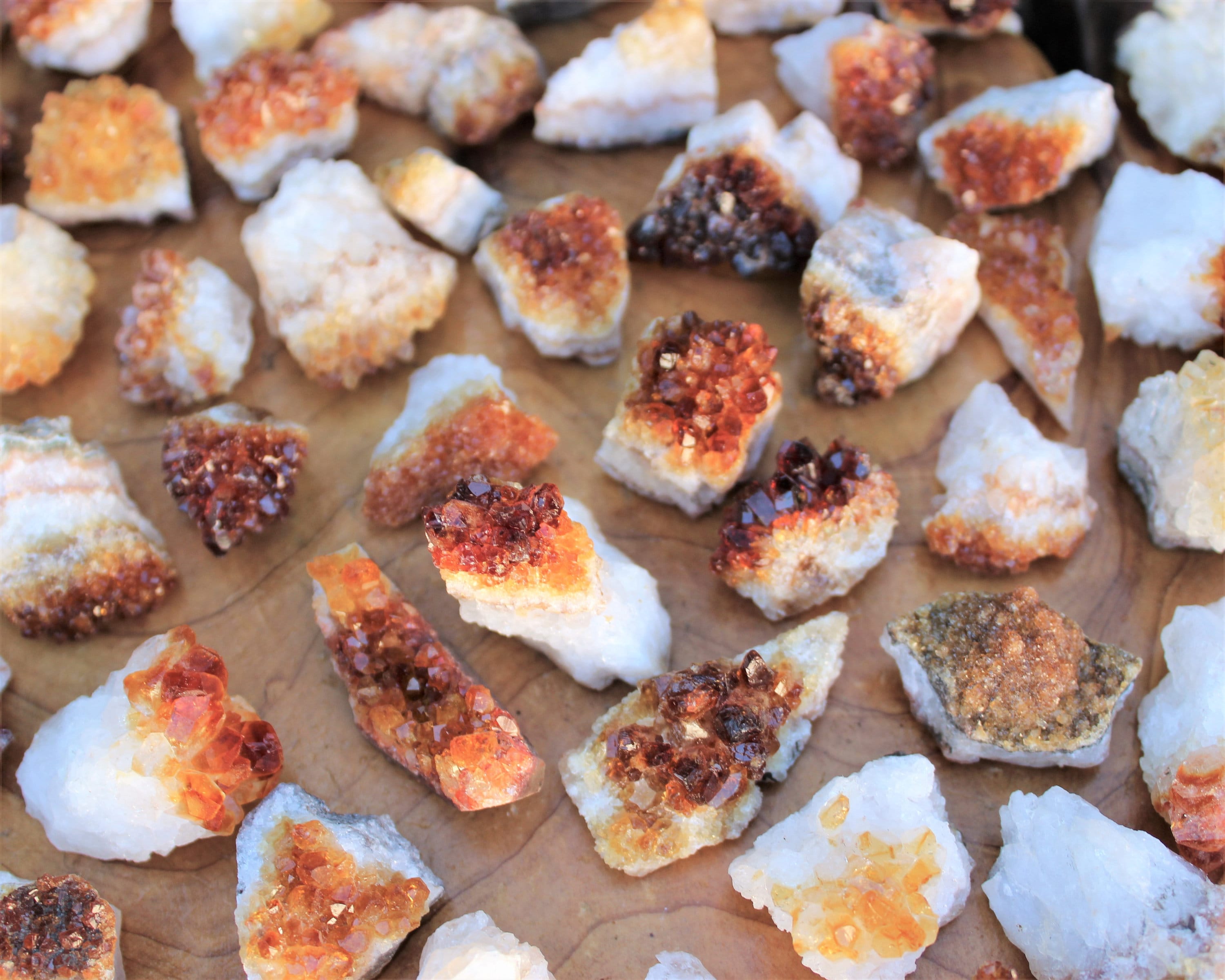 Clusters shown are for illustration only. Stones supplied will be very similar but not identical. Posted pictures are to provide an idea of the typical mix of sizes, colors and shapes available. Like most citrine sold today these clusters have been heat treated.