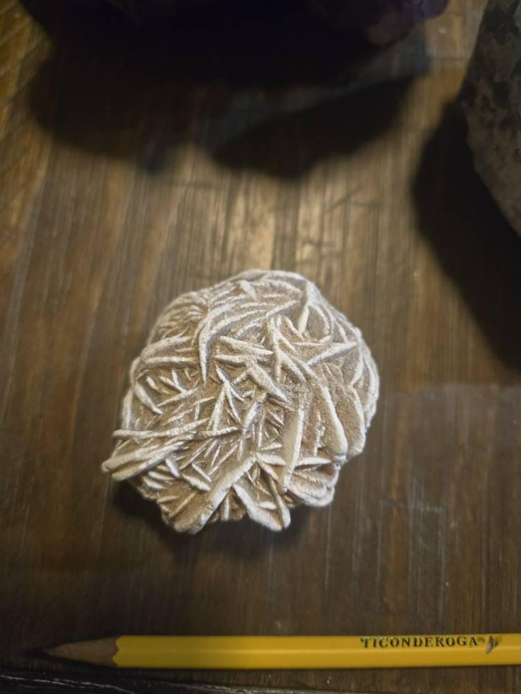 A select number of crystals can take the form of the desert rose and Selenite is one of them. Selenite has many wonderful properties such as providing mental clarity, increasing heightened awareness of self and of ones environment. Opening doors to allows one to see inner truth. Promotes success in business and assists in accessing past lives.