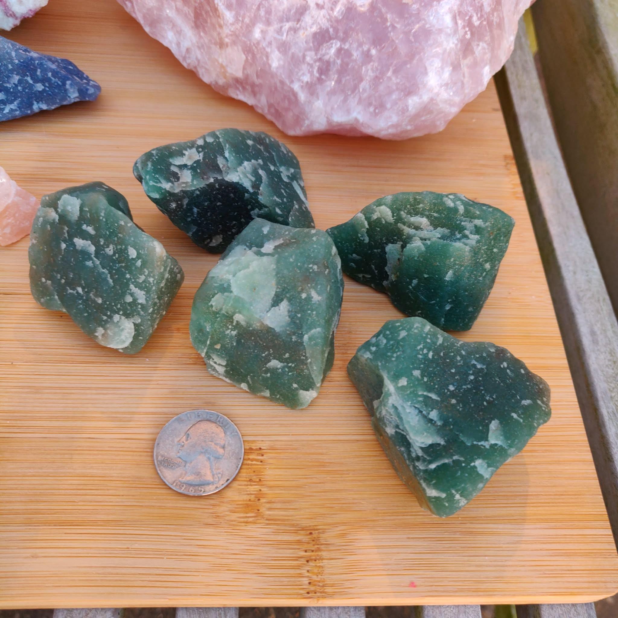 LARGE Natural Rough Green Aventurine, size between about 2" to 3", from Brazil. High quality specimens. Very strongly associated with the Heart Chakra this stone is also believed by many to assist in attracting money and wealth. Also know as the 'good luck stone' or the 'stone of opportunity' these are high quality specimens.