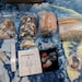 Small - 2.5-3" Chunky Selenite Stick (always useful to cleanse other crystals), Palo Santo Wood, selection of three Tumbled Stones and four Rough Stones, Mystery Worry/Palm Stone & Quartz Point.