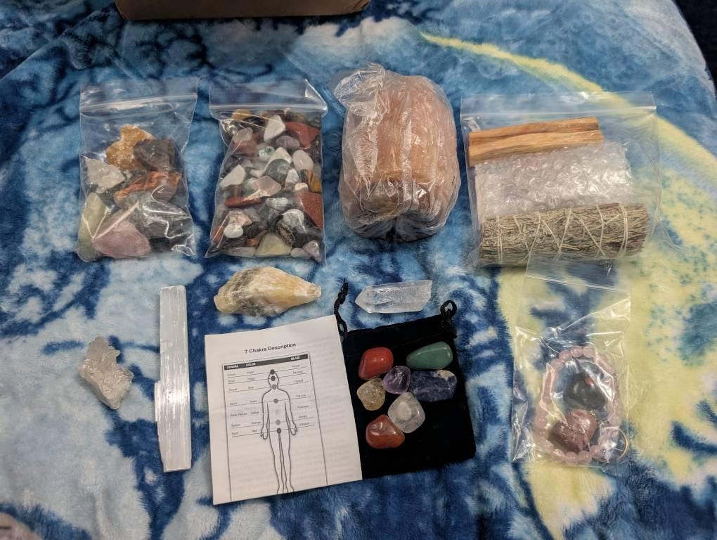 Among these potential contents above, boxes may contain random gifts of Crystals and stones that are looking for their forever home.