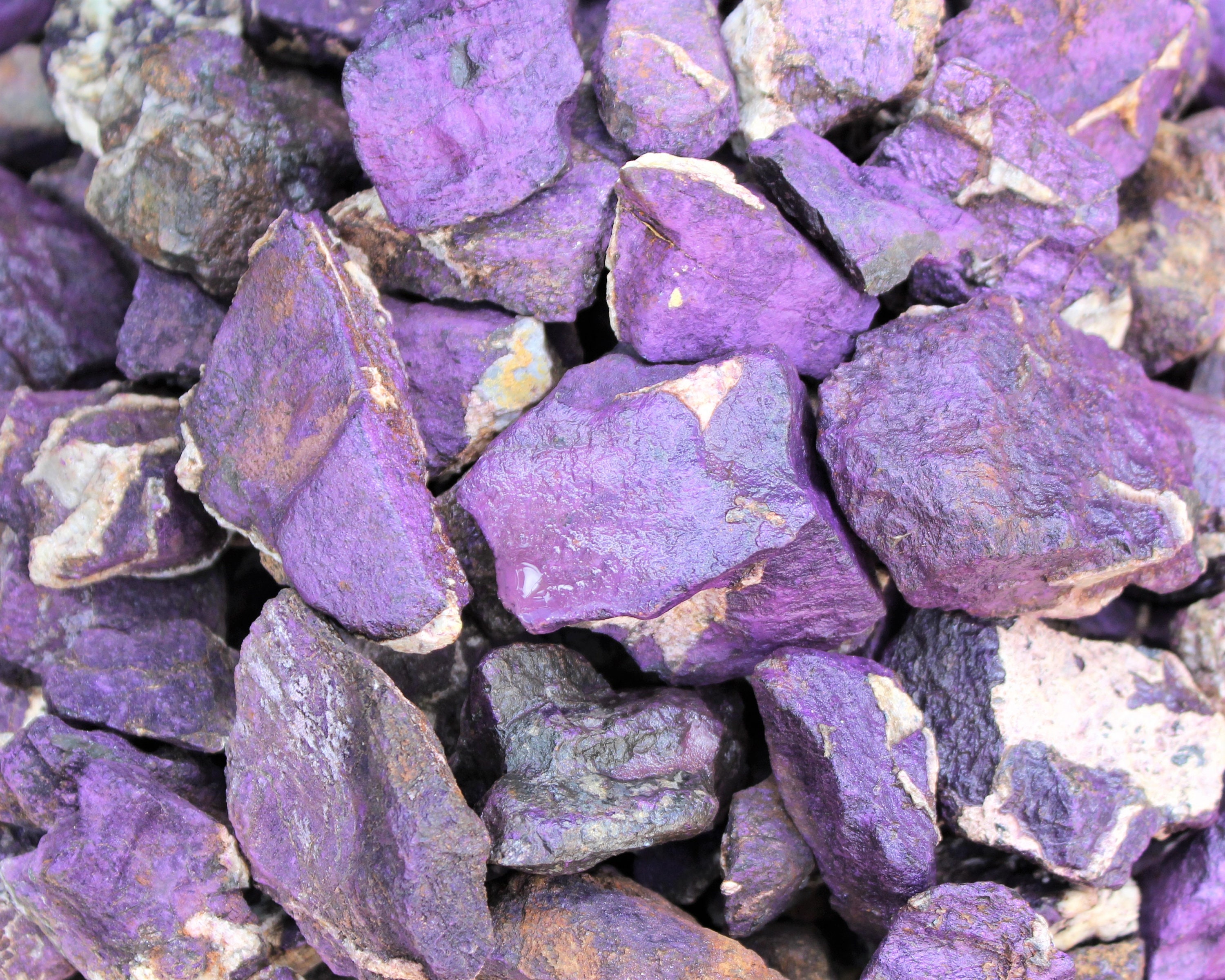 Premium Grade Lots of Purpurite Rough Crystals, size between 0.75 - 2.5" +/-, from Brazil. High quality specimens.