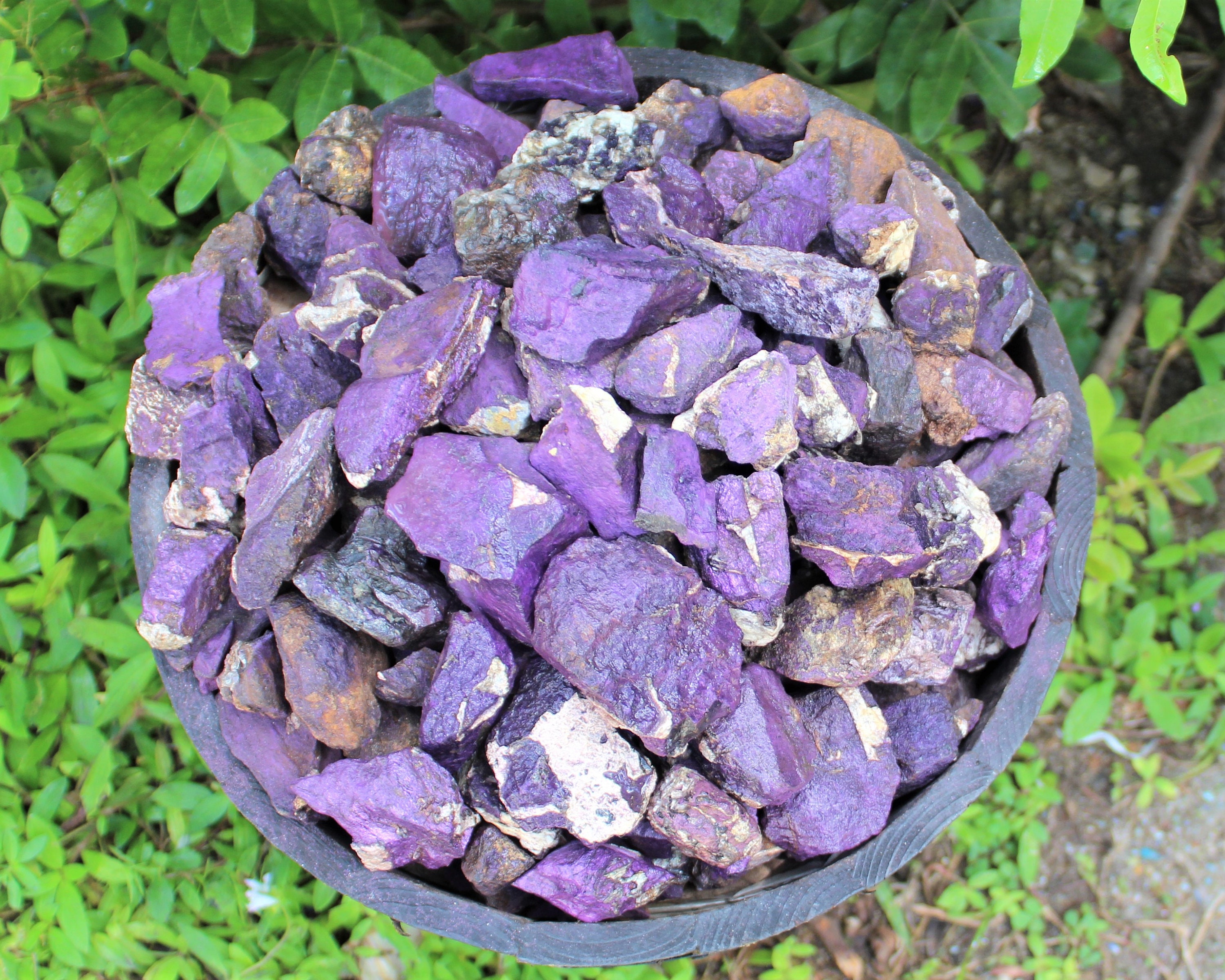 The purple on these is even more vibrant thnlan the pictures. Get them wet or tumble them and it is super pretty.