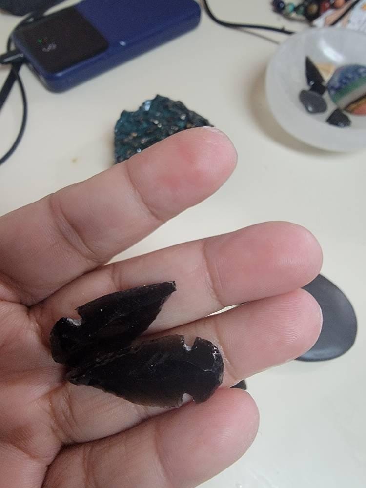 These arrowheads are a stunning deep black. Each Arrowhead is made from beautiful Black Obsidian Crystals. Size varies from piece to piece - average is about 1" +/-. Pictures show slightly larger arrowheads then current stock.