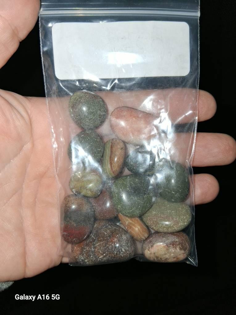 Stones shown are for illustration as these are natural items please expect variance in color and shape from item to item. Stones supplied will be very similar but not identical and selected at random based on stock on hand at time of order. Posted pictures are to provide an idea of the typical mix you will receive.