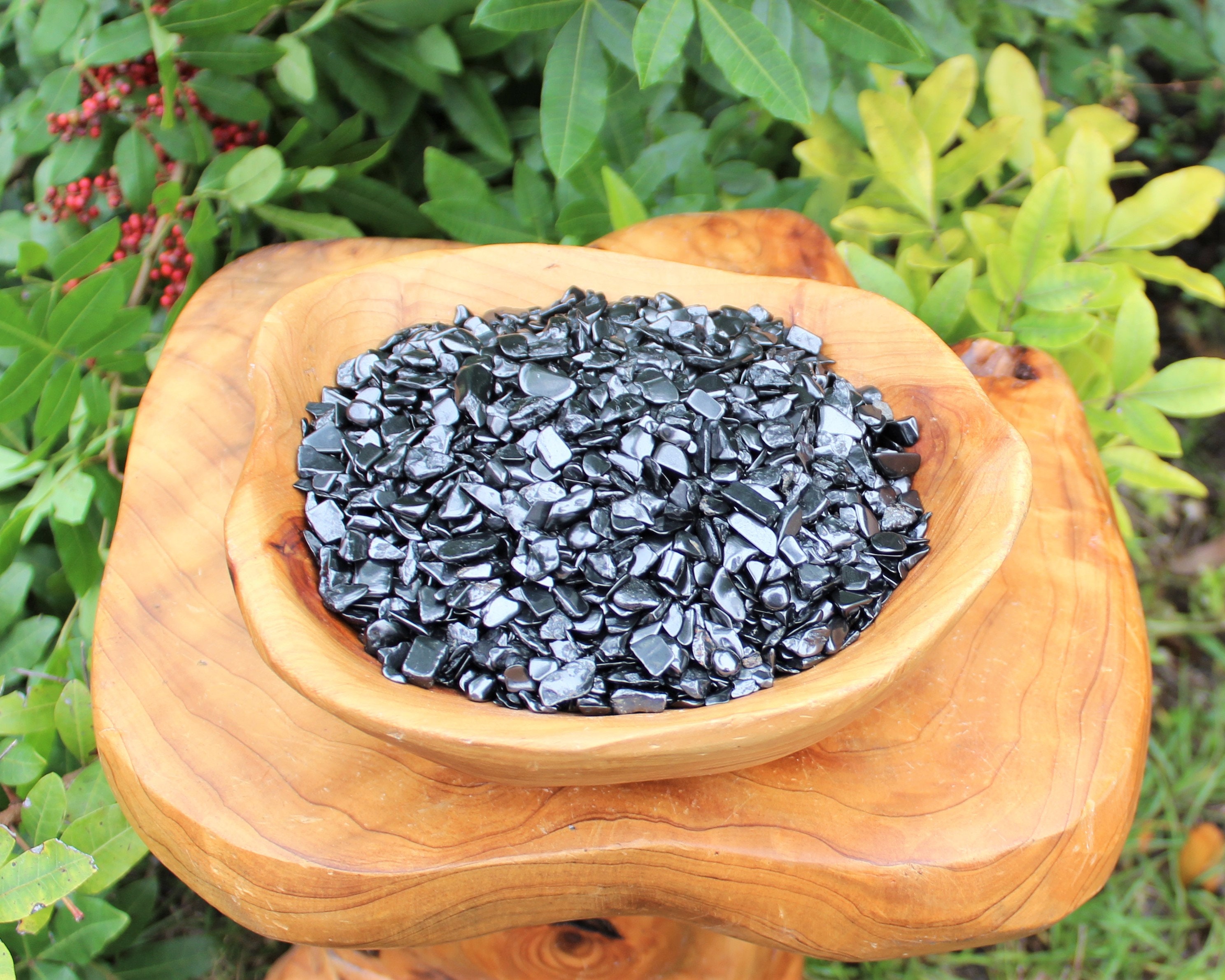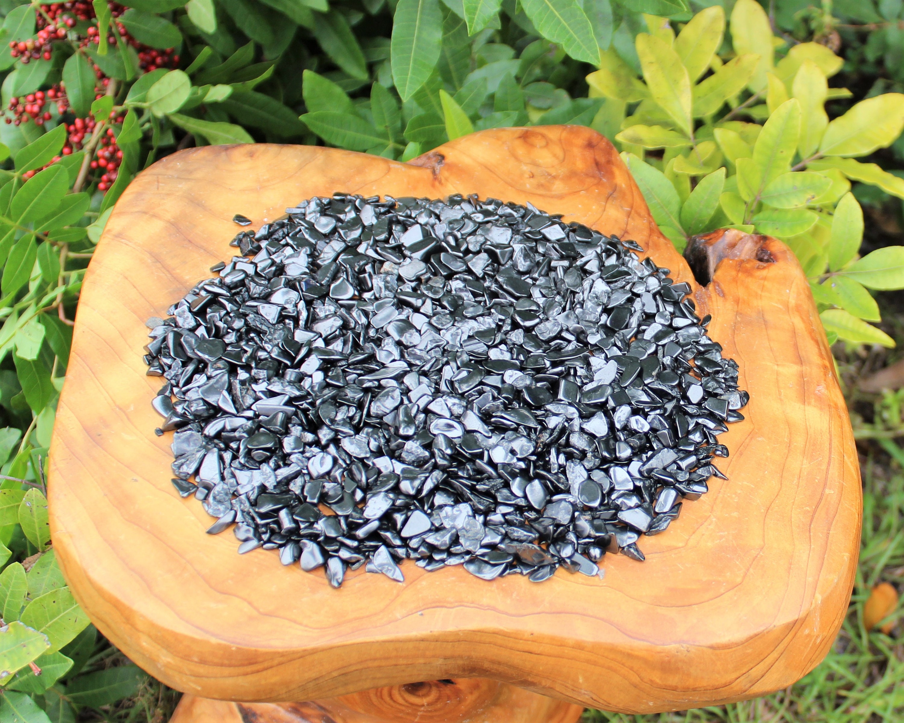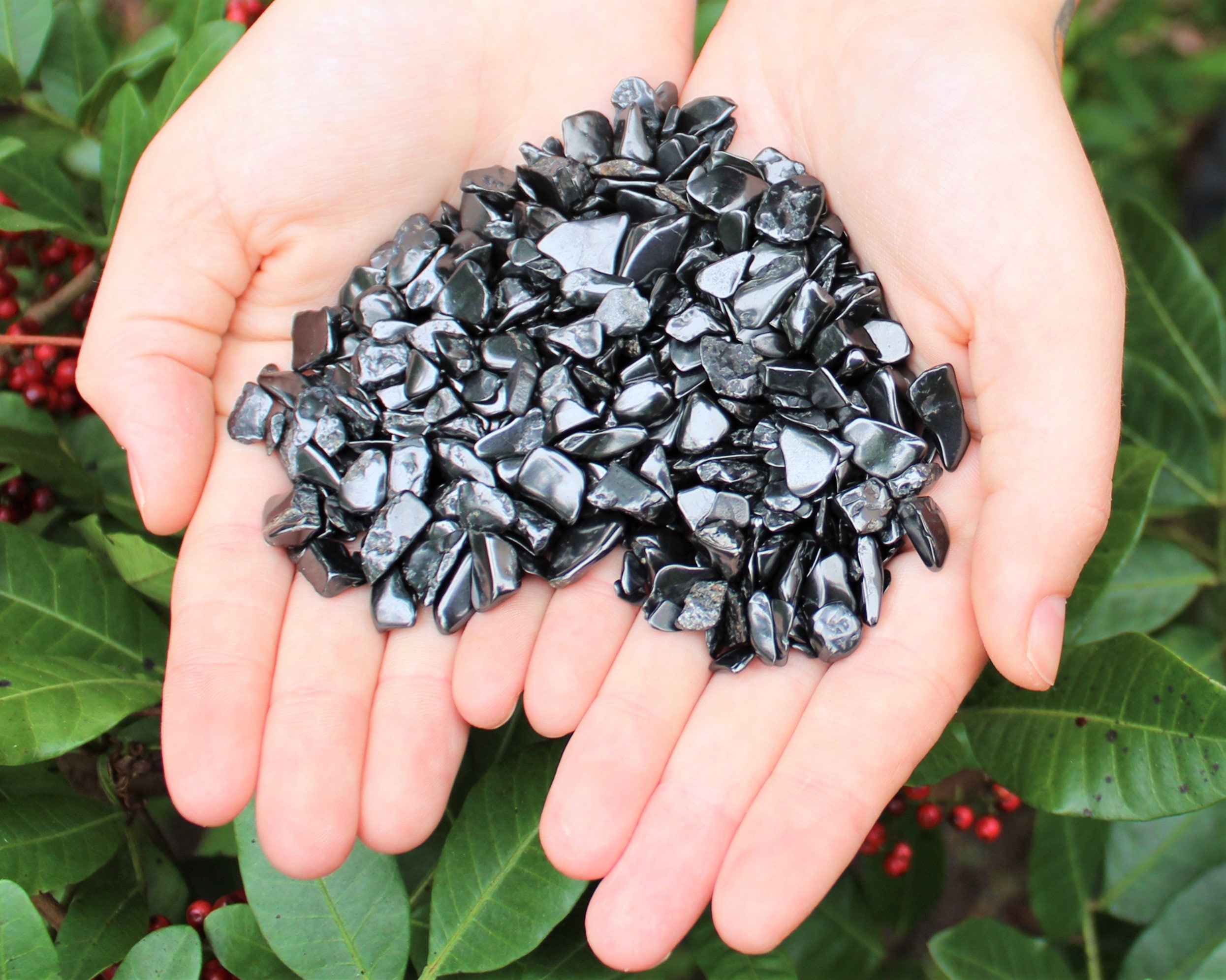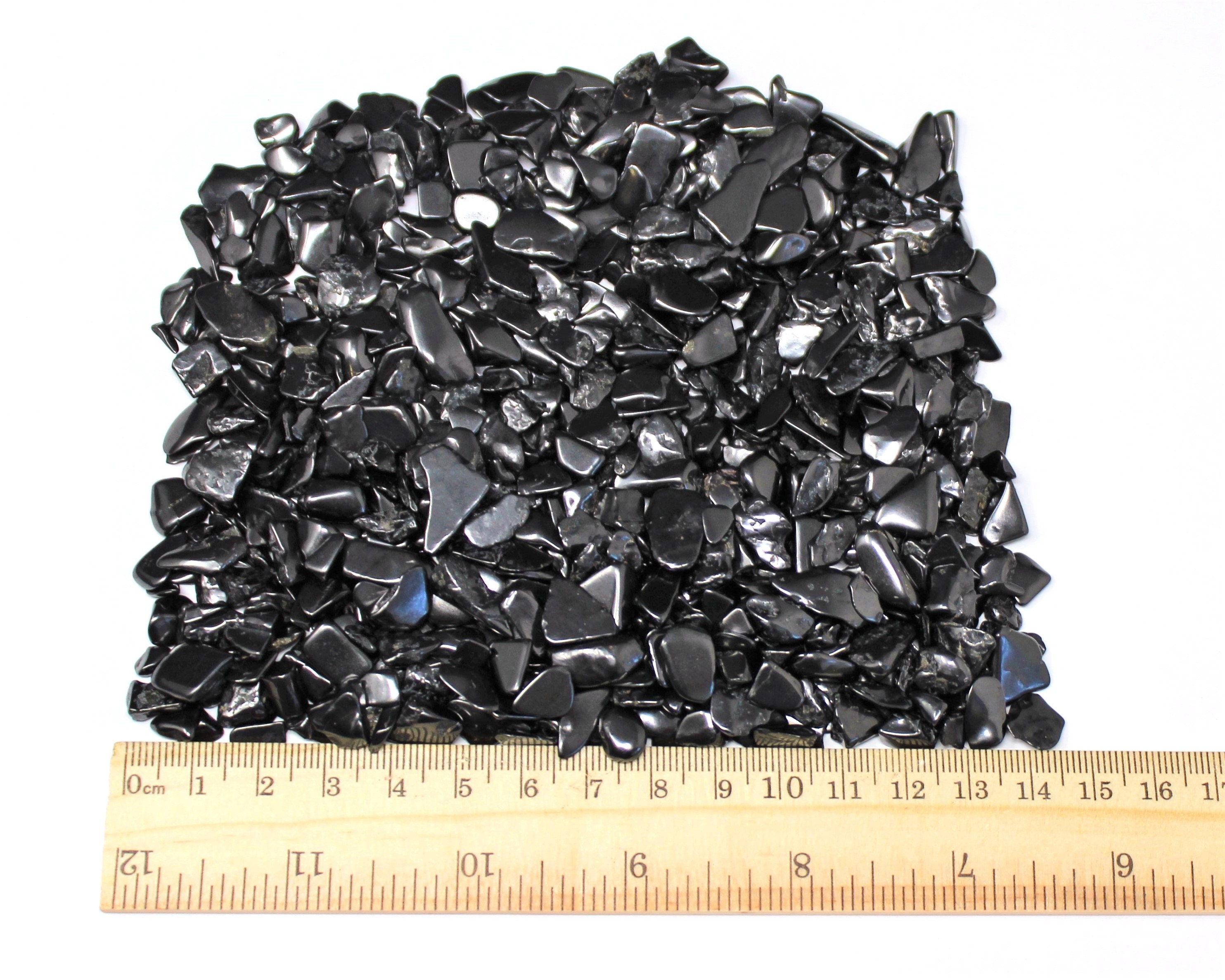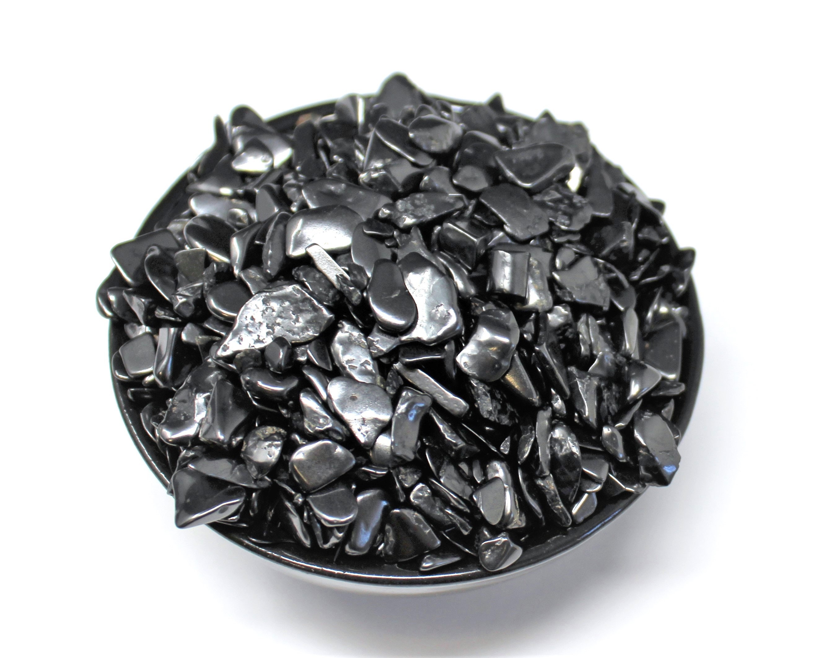 Loose Shungite chips assorted sizes and shapes as pictured. Assorted sizes, mostly in the range of 5 - 15 mm. They are great not just for decoration but for all types of craft and art projects, etc. Semi rough tumbled mini chip stones.