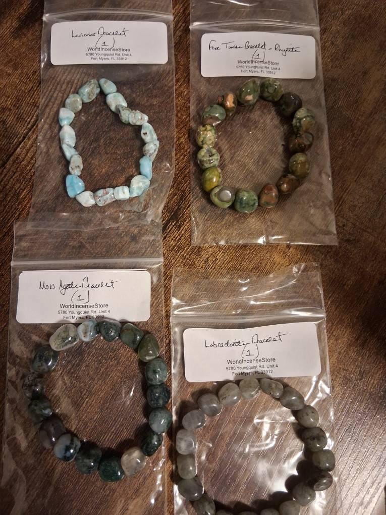 BUY 3 GET 1 FREE - If you purchase 3 bracelets from this listing, we will randomly select another Tumble Bracelet and include it free! This can apply as many times as you like, example - Buy 6 Get 2 Free, Buy 9 Get 3 Free. We will make sure your free bracelet is different, beautiful and full of Energy! We do not accept special requests for the Mystery Bracelet, one will be pulled at random intuitively. (Mystery Bracelet Multi Packs count as one single purchase).