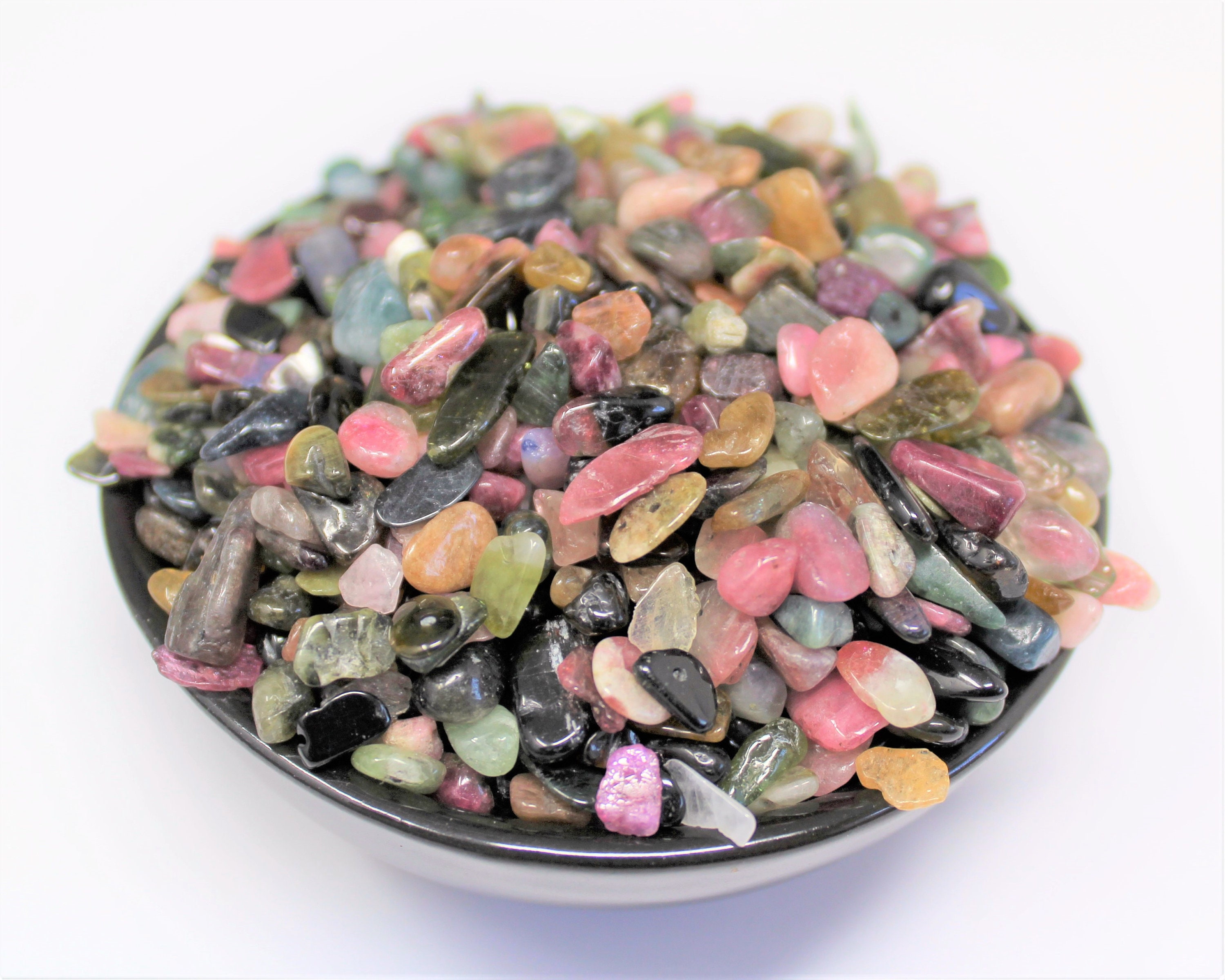 Loose Rainbow Tourmaline chips assorted sizes, colors and shapes as pictured. Assorted sizes, mostly in the range of 2 - 5 mm. These Rainbow Tourmaline crystal chips have a stunning combination of Pink, Green and Black Tourmaline chips making a wonderful mix. They are great not just for decoration but for all types of craft and art projects, etc.