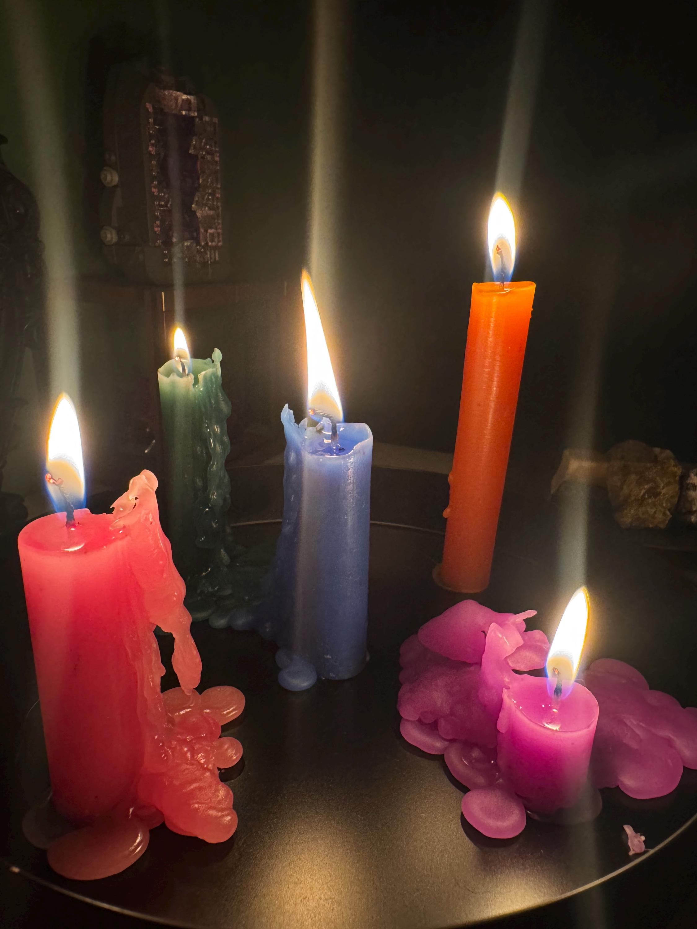 The candles are tough and will stand up well to use outdoors. Some blemishes may be visible on the outer but the candles are solid all the way through. As such they are practical and meant to be burned and enjoyed rather than 'displayed' in a formal setting. Please be aware that on occasion the candles may come with minor 'dings' or marks. We understand they are not 'perfect' but they are great, low cost, candles suitable for a variety of your ritual needs!