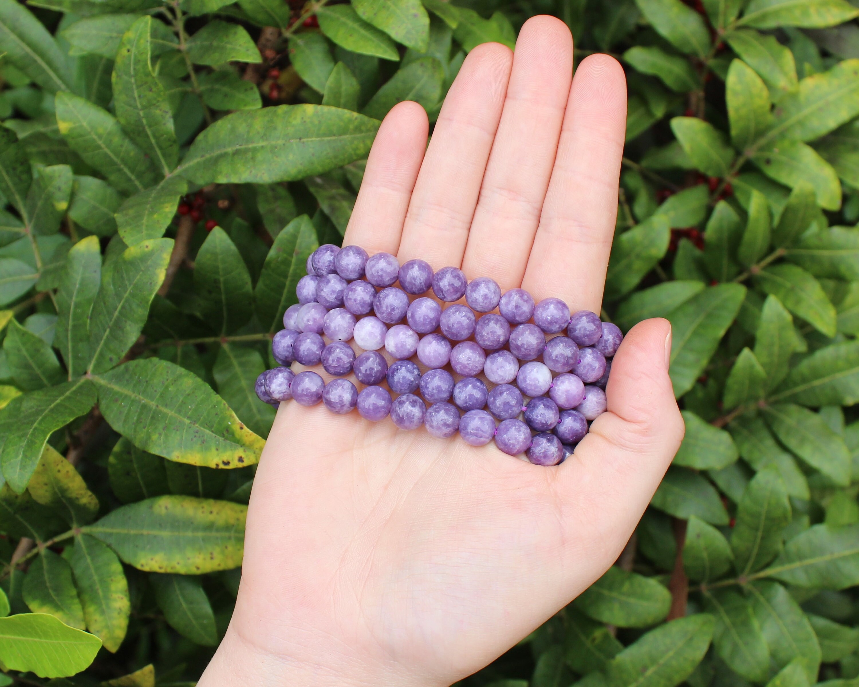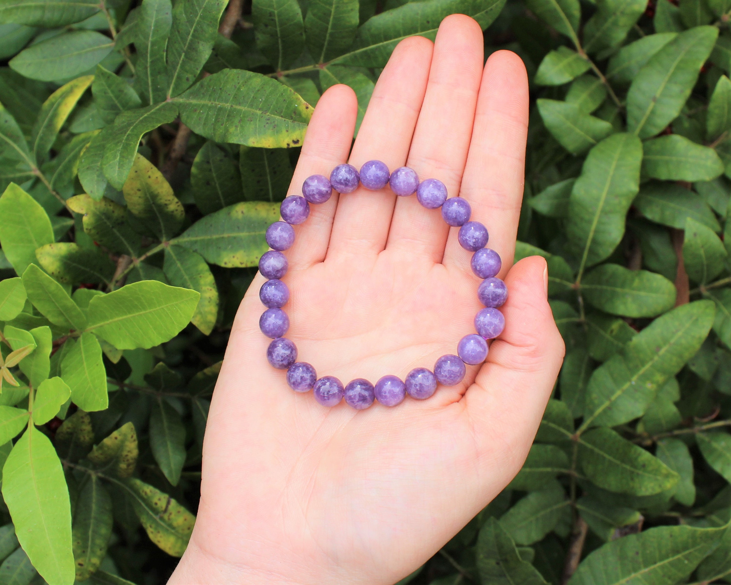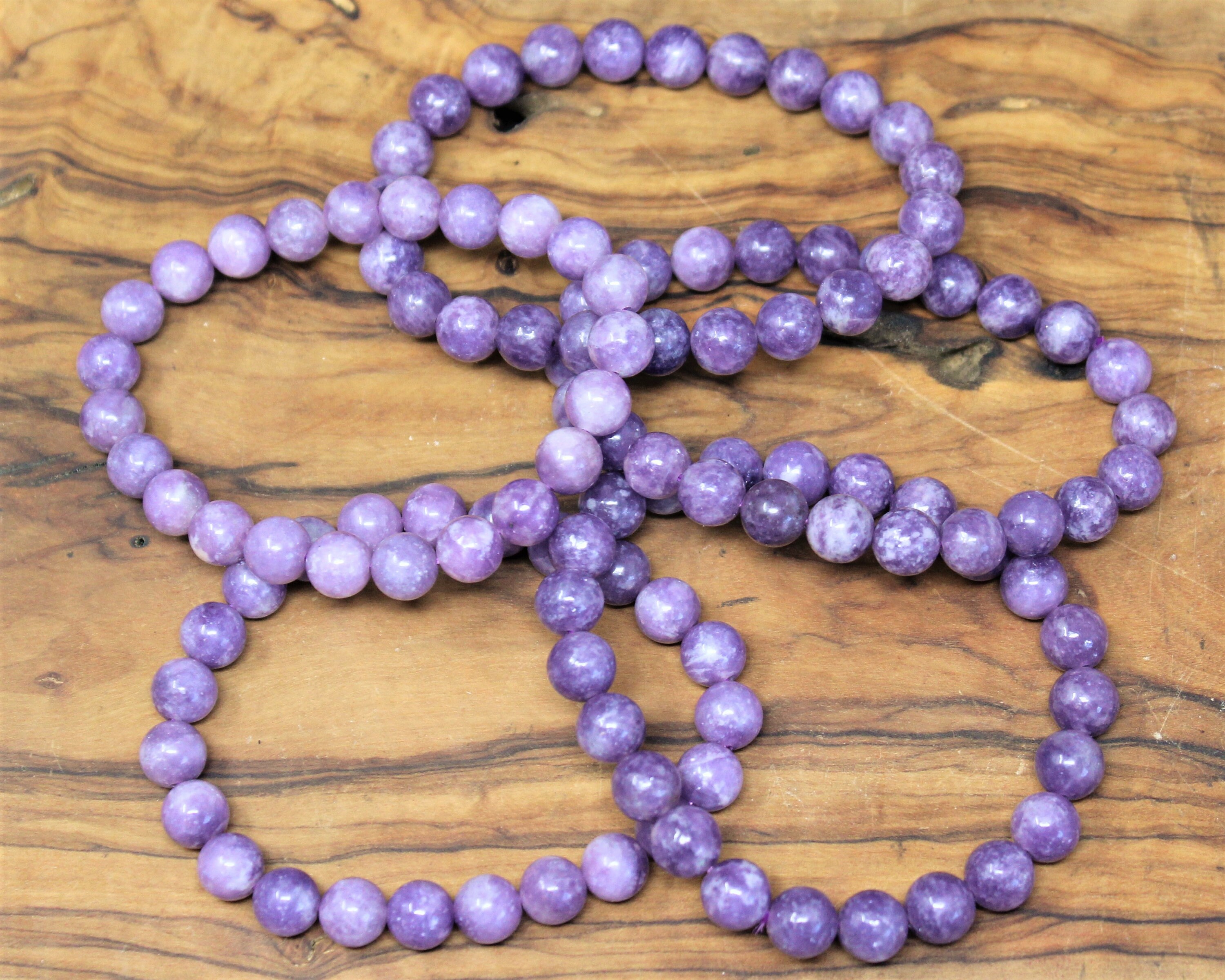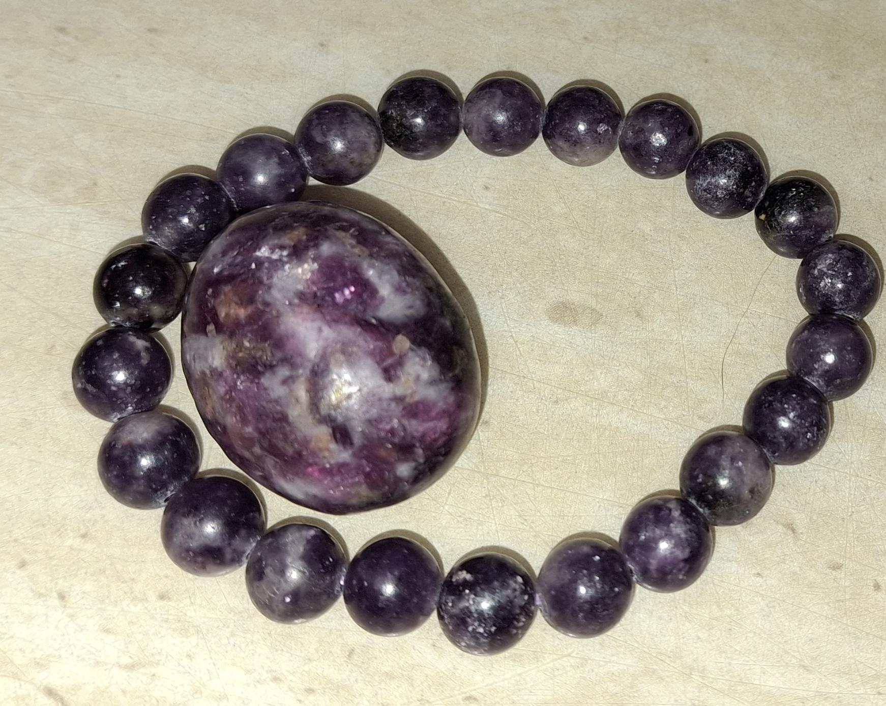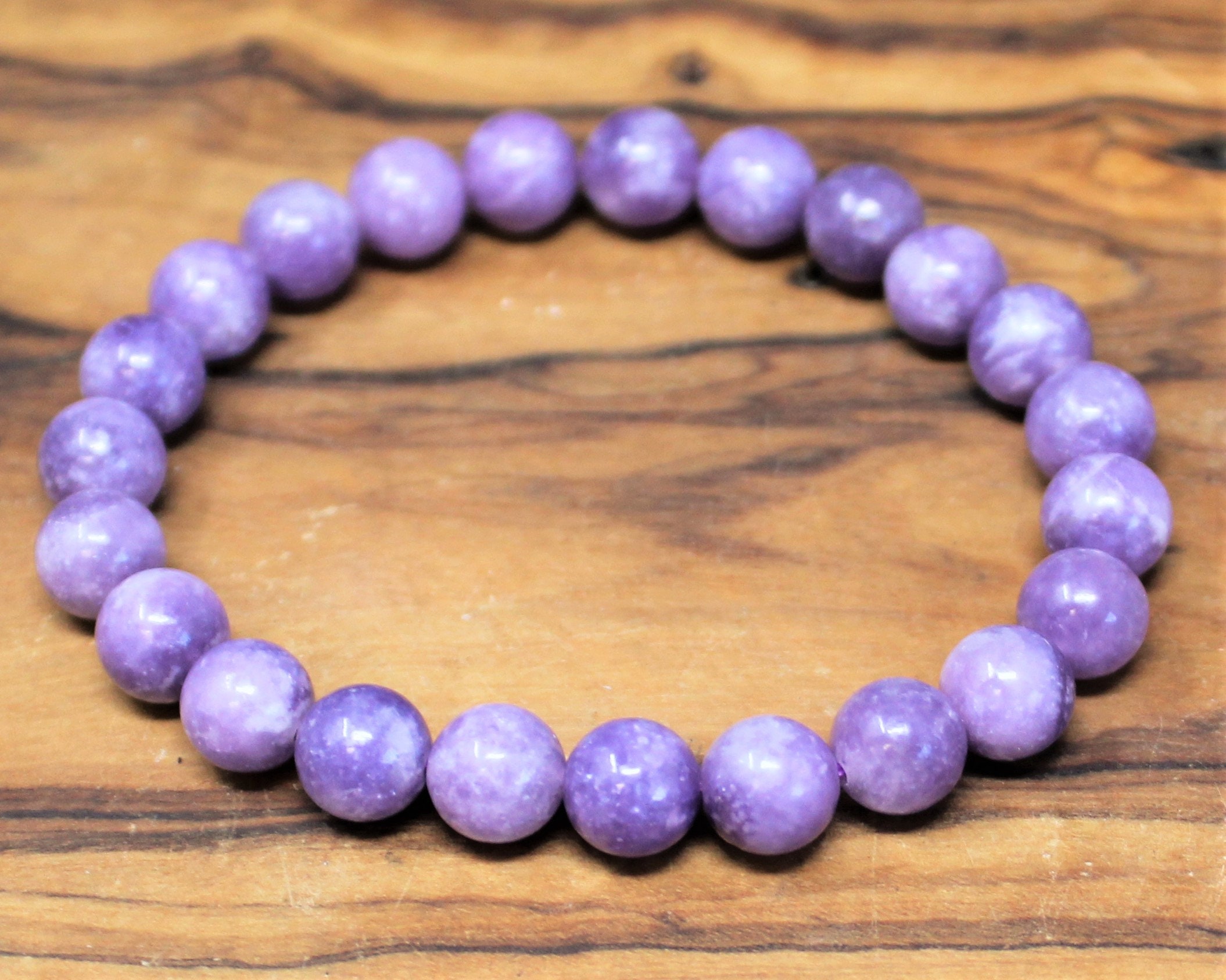 A beautiful bracelet crafted from Lepidolite beads. 8 mm beads on a stretchable bracelet, fits most wrists. About 7.5" in size. Great for meditation, crystal healing, Reiki or simply wearing!