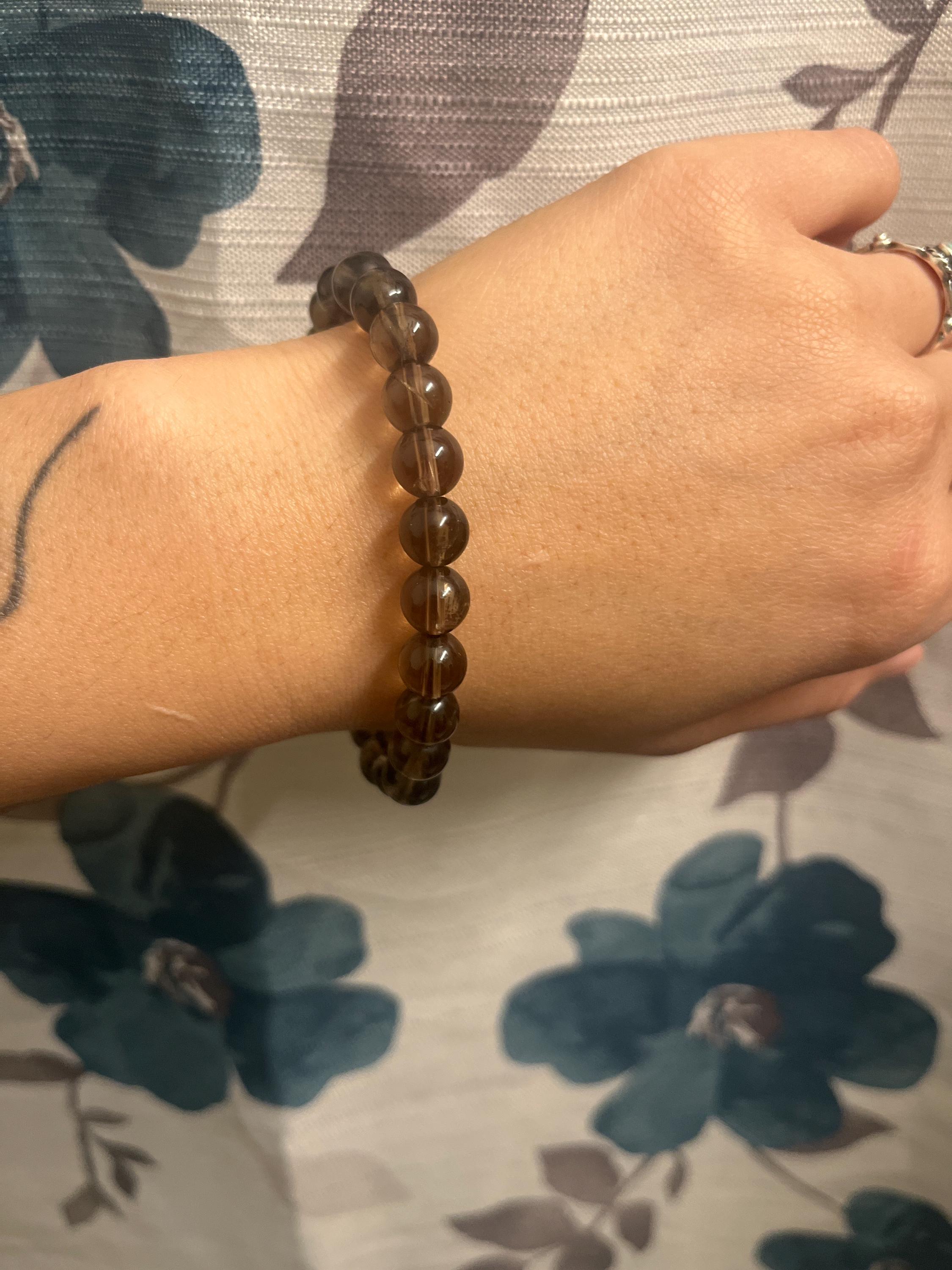 A beautiful bracelet crafted from Smoky Quartz round beads. 8 mm thick beads on a stretchable bracelet, fits most wrists. These Darker Smoky Quartz Bracelets have a stunning unique nature to them. Each crystal is Translucent with varying levels of clarity. About 7.5" in size. Great for meditation, crystal healing, Reiki or simply wearing!