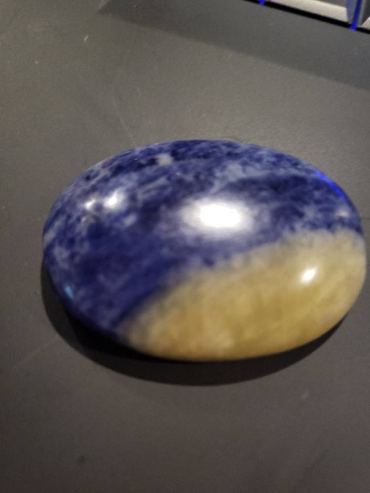 This worry stone has been carved from Sodalite and is about 1.5" +/-.