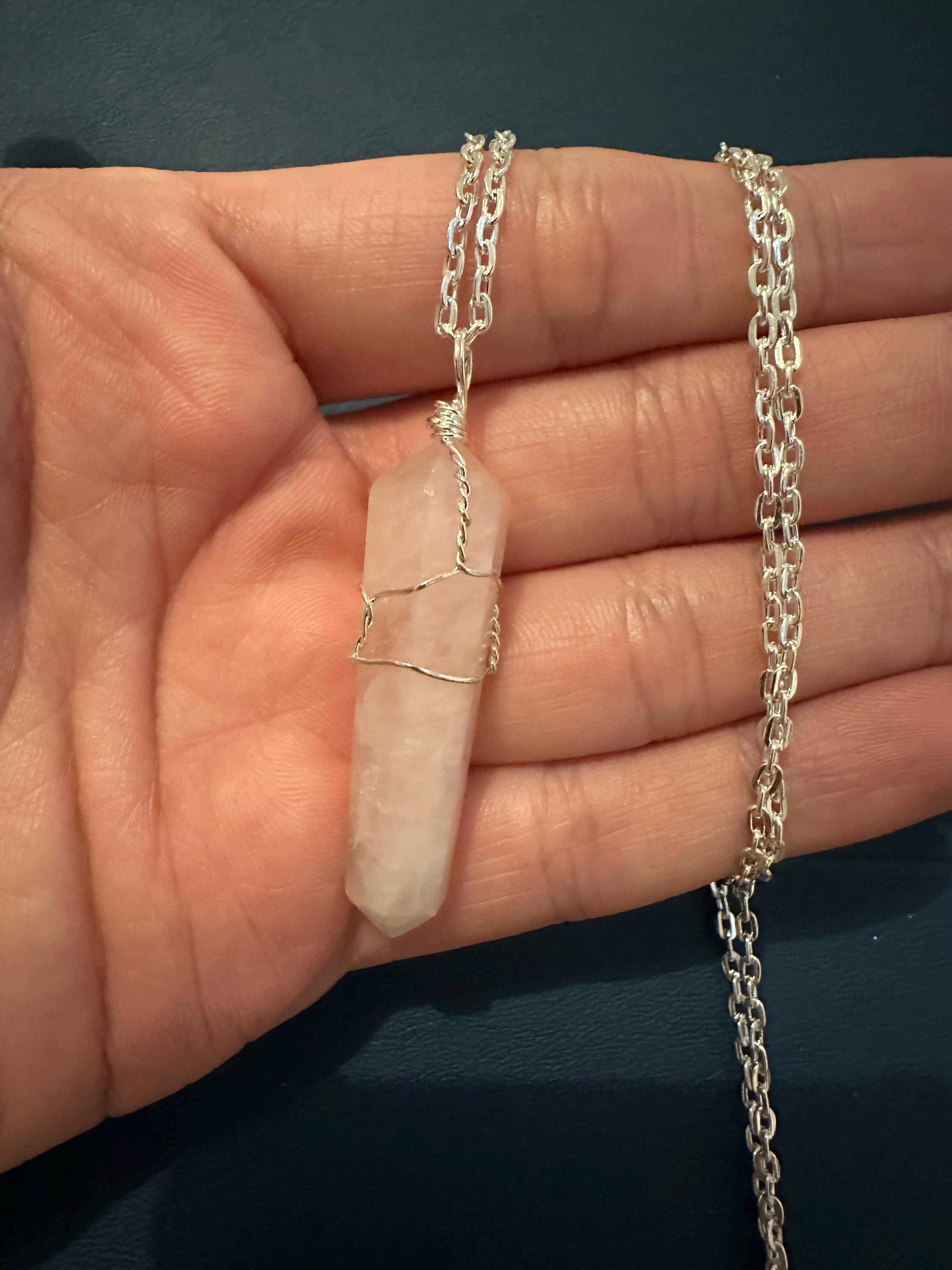 Beautiful Rose Quartz Crystal Pendants wrapped in wire. These double terminated faceted pendants measures about 1.25 - 1.5" +/-. You can select just the pendant by itself; or add an 18" / 24" Chain. We also offer these Pendants with bulk discounts, more value as you buy more! High quality genuine gemstone crystal pendants at an unbeatable value.