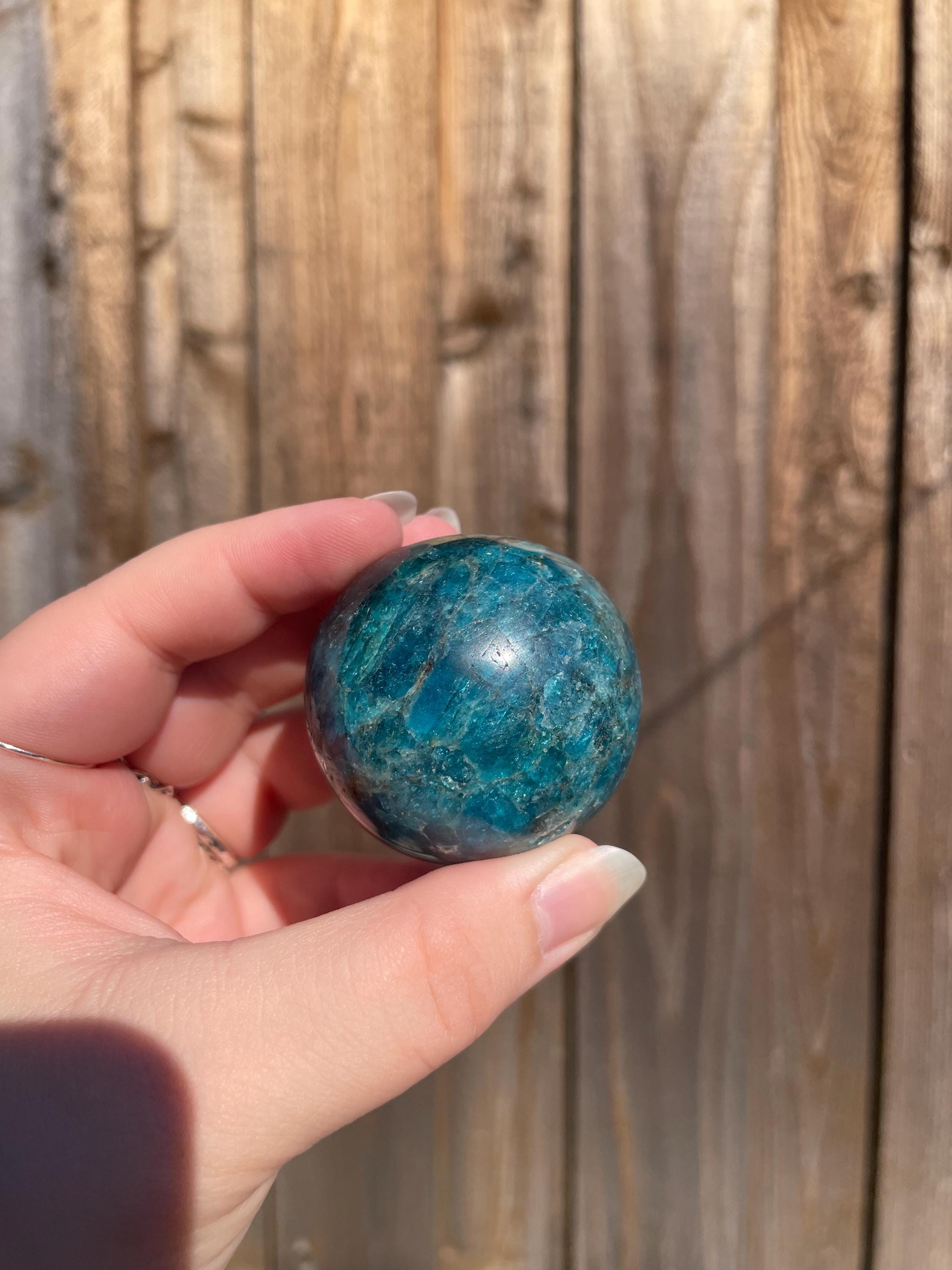 Magnificent polished Blue Apatite Spheres from Madagascar. They are approximately 1.5 - 2" in Diameter with a small amount of variance. Stunning deep blue coloration mixed with the gorgeous natural inclusions associated with Apatite make these some of the most alluring crystals we carry. Each sphere comes with a mini plastic stand.