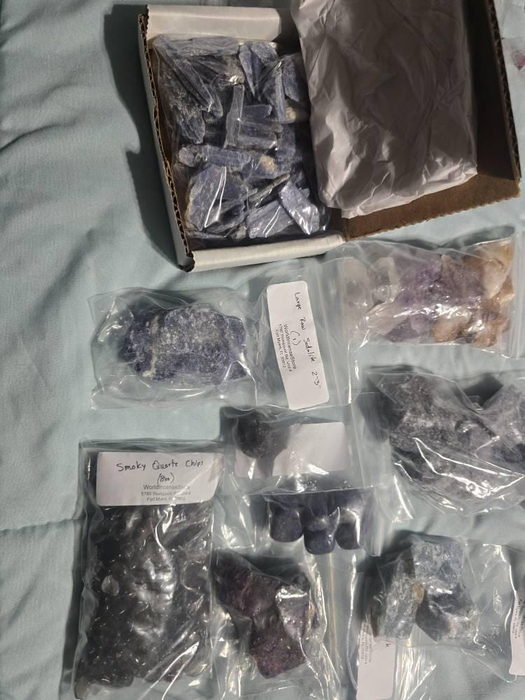 Blue Kyanite Blades - natural raw (rough) blades. 1/2 lb (8 oz) Box Lot, from Brazil. Most pieces are about 0.75" - 2" in size but do expect some smaller pieces in the mixes.