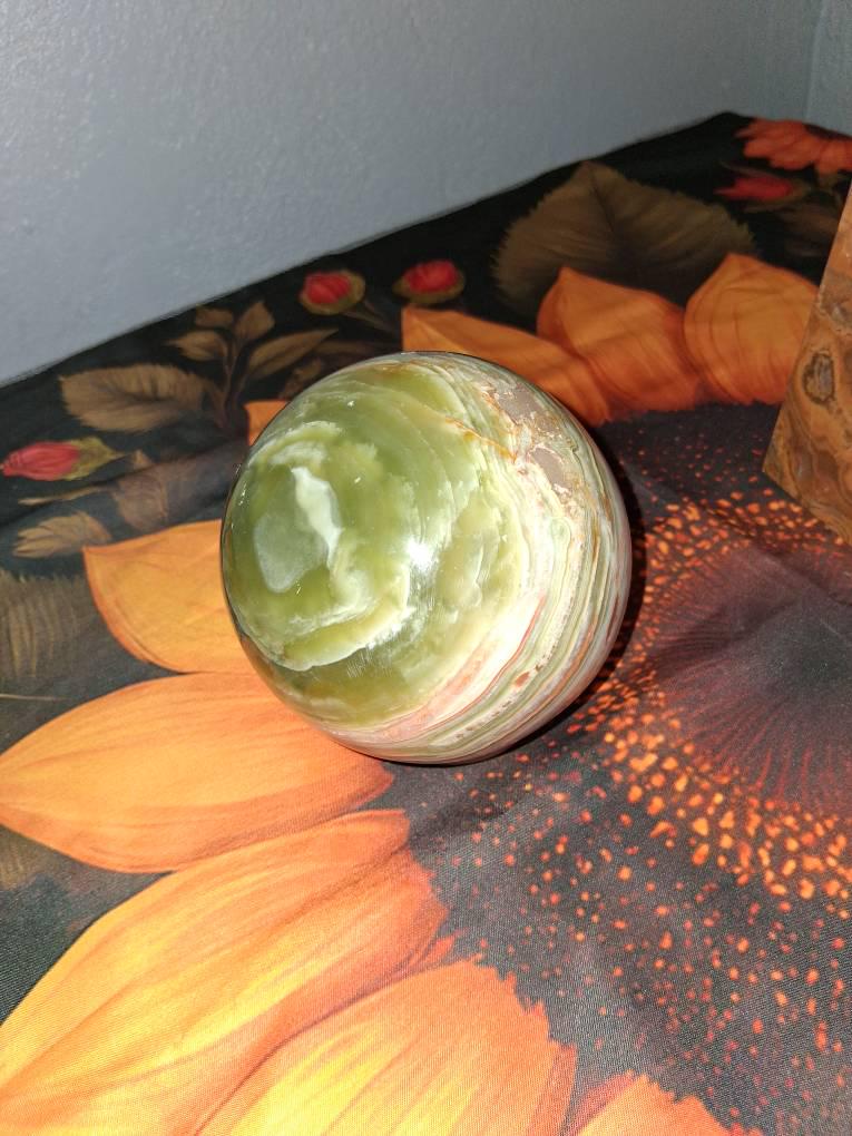 This is my forth huge Green Agate Sphere that I've purchased from this shop and I love all of them. The different unique banding they each have are what make them beautiful. I gave one of them away to a friend.