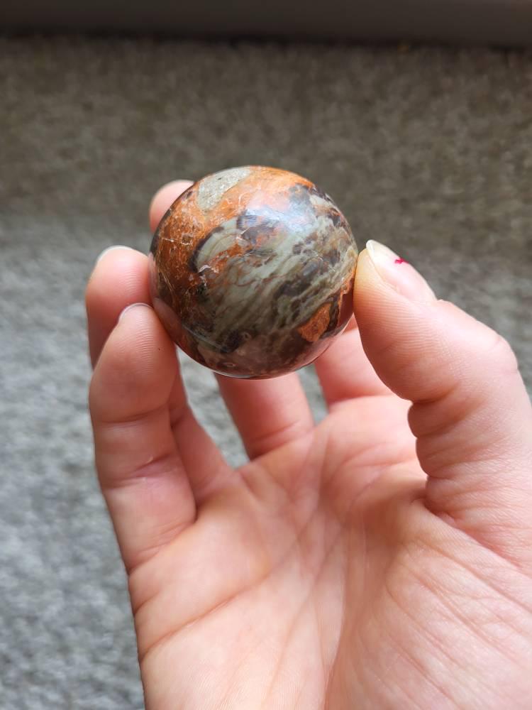 Each sphere is unique so do expect some variance in color and pattern from piece to piece. Sale is for 1 single piece selected at random at time of shipment.