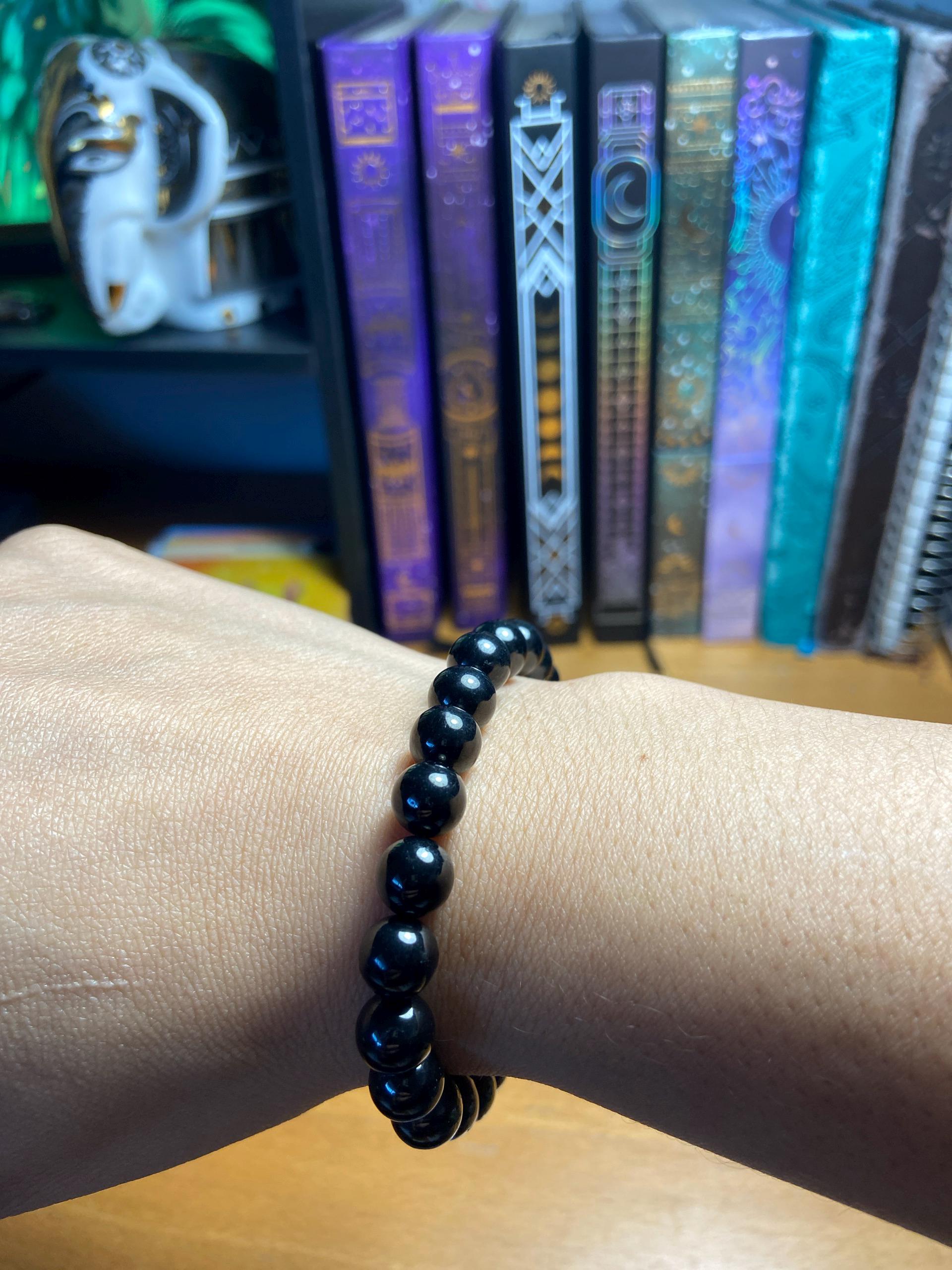 A beautiful bracelet crafted from Jet beads. 8 mm thick beads on a stretchable bracelet, fits most wrists. About 7.5" in size. Great for meditation, crystal healing, Reiki or simply wearing!
