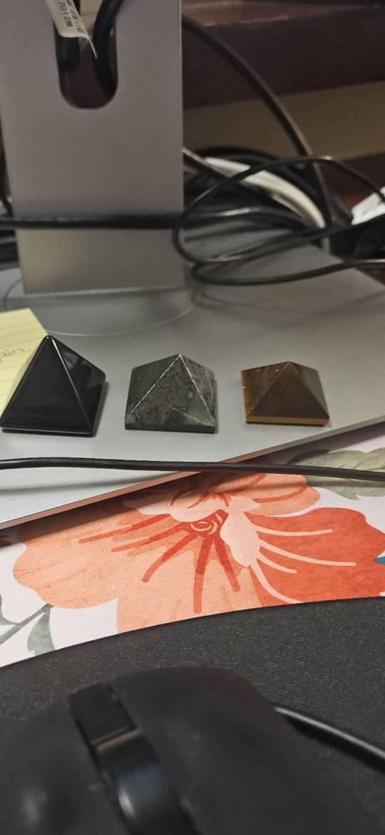 I absolutely adore my three crystal pyramids! They are exactly what I pictured—the size is perfect, and they look even better in person. I truly feel protected and more grounded in my workspace with them around. They were exactly as described, and the quality is outstanding. I would definitely recommend these crystals to any buyer and will 100% purchase from this seller again!