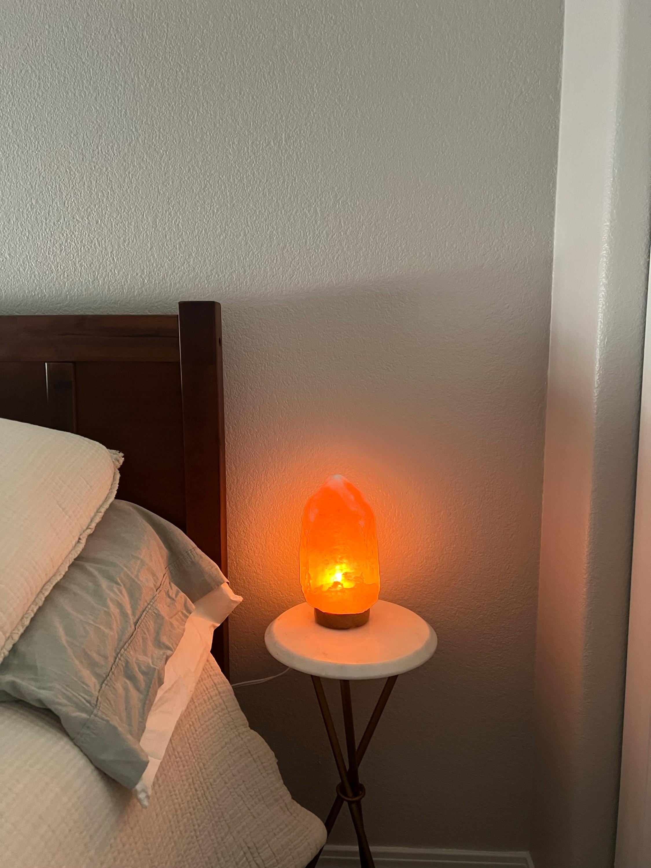Beautiful Natural Himalayan Salt Lamps. These stunning crystal lamps emit such a calm warming light that will bring serenity to any space. Lamps will be 8" tall with some variance and will vary in thickness from around 4 - 6" +/-. Weight will vary per lamp from 4 - 8 lb. Each lamp comes with a 5 foot Chord and Bulk with easy to use switch.
