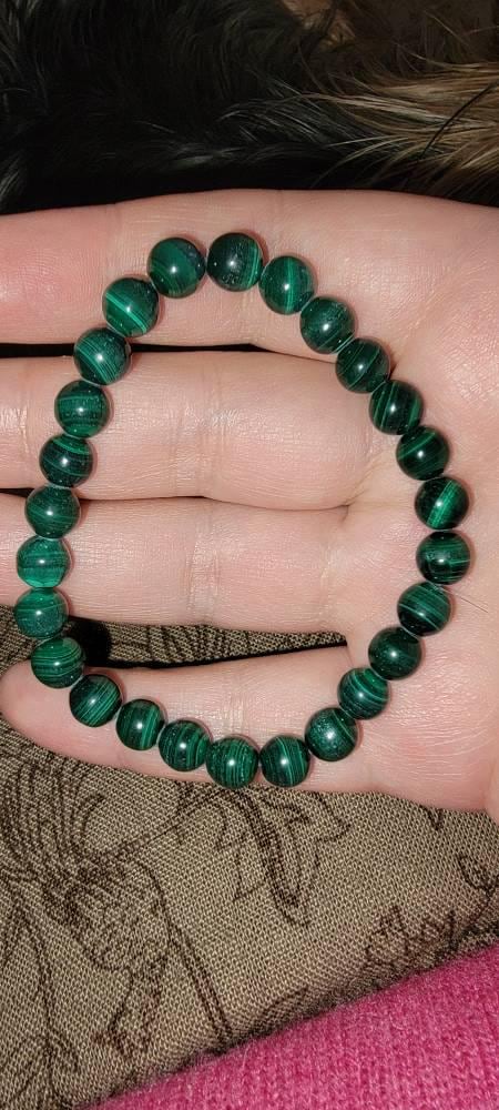 A beautiful bracelet crafted from 100% Genuine Malachite beads. Choose between 6 mm or 7/8 mm beads on a stretchable bracelet, fits most wrists. About 7.5" in size. Great for meditation, crystal healing, Reiki or simply wearing!