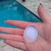 These beautiful milky blue stones are one of the few man made stones we absolutely love! Don't let the 'man made' aspect stop you from owning at least one of these gorgeous pieces. They have a beauty that is compelling. In fact they are made up of 'real' gemstones that have been compressed and tumbled. Metaphysically it will assist with communication and removing blockages in the Chakras. Strongly associated with the Crown Chakra. The material is wonderful to meditate with as well as it is a very calming, peaceful stone.