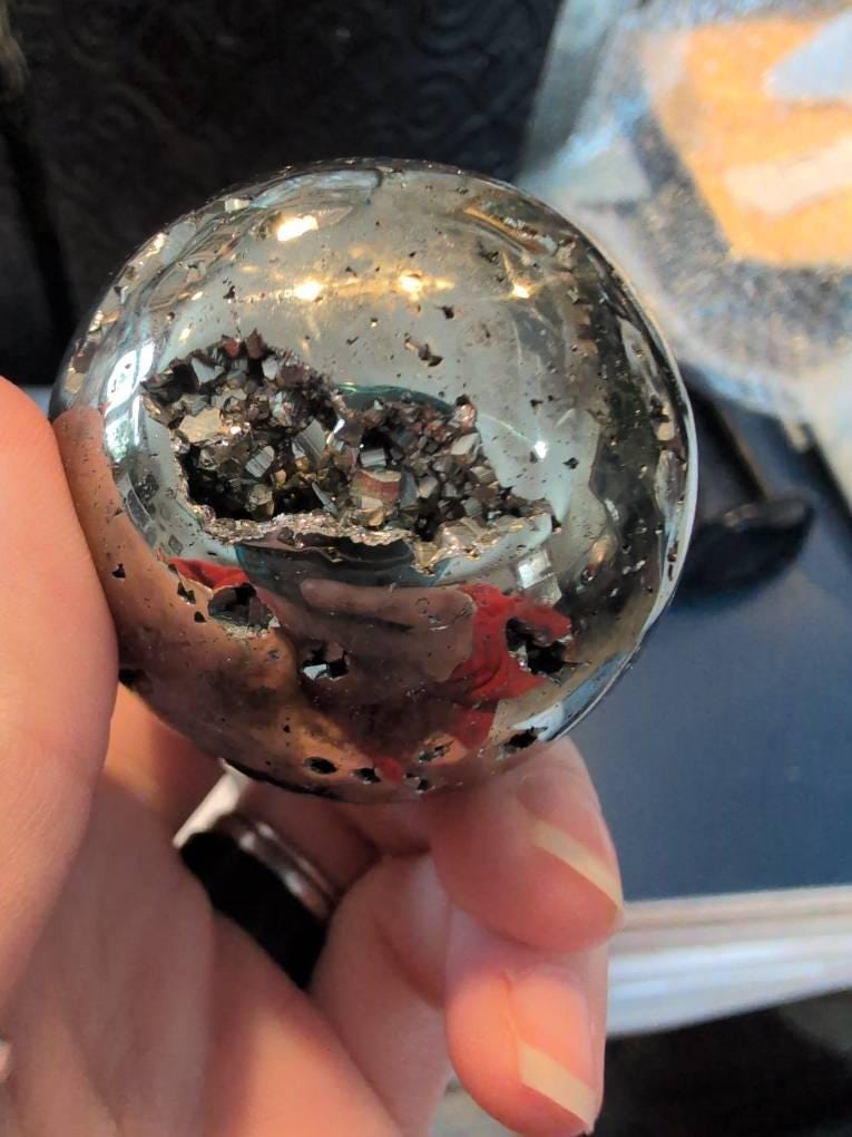 This crystal sphere is my favorite of all time! The pictures do not do it justice. It’s the perfect size and absolutely stunning. If you like pyrite as much as I do, this sphere is for you. I have ordered from this shop before- fast shipping, packaged well and good quality items each and every time. Highly recommend to anyone in the market for crystals!