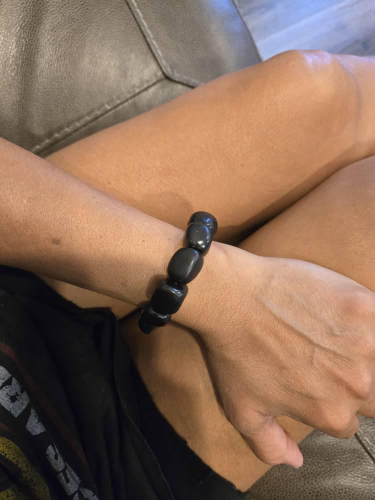 A beautiful bracelet crafted from polished Shungite tumbled stones. 6-8 mm thick nuggets on a stretchable bracelet, fits most wrists. About 7.5" in size. Great for meditation, crystal healing, Reiki or simply wearing!