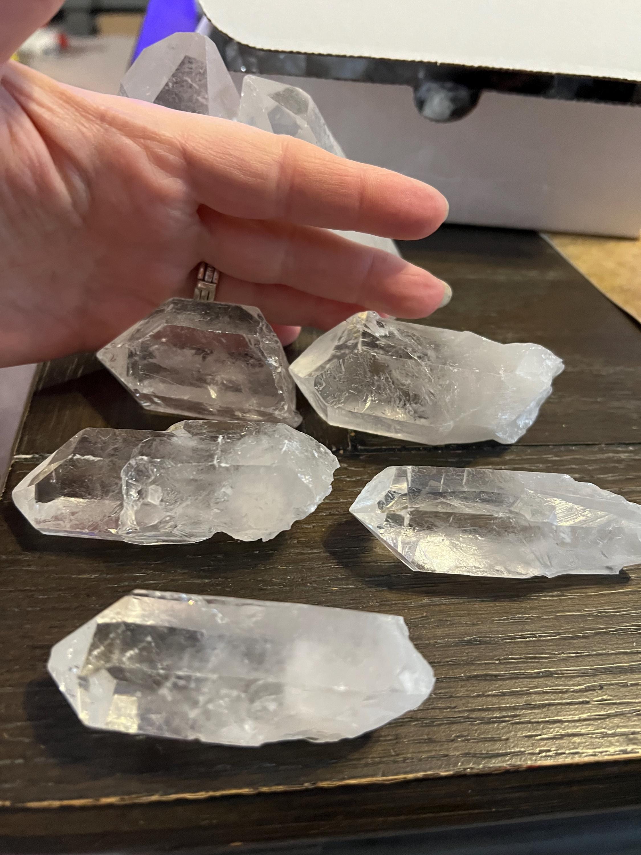 'A' Grade quality Natural Clear Quartz Points, beautiful crystallization and structure. Each specimen is unique in shape, weight and clarity but all will be in the 2 - 3" range. Width will vary, some are short and chunky, others long and skinny. Bring loving and healing energy into any space with this Large Crystal Point. This size range is an unbeatable value!