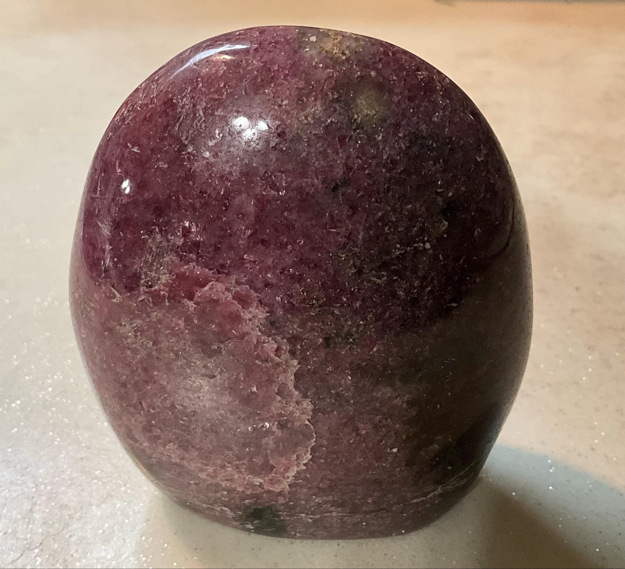 Rhodonite just speaks to me & has since I felt my first tumbled stones. This Freeform is gorgeous. It is nice & heavy & the perfect size. Since I have my tumbled stones in my bedroom, I put this one out in my living room. I find it very calming & healing plus it radiates love (for me @ least). You will not be disappointed with any of their products