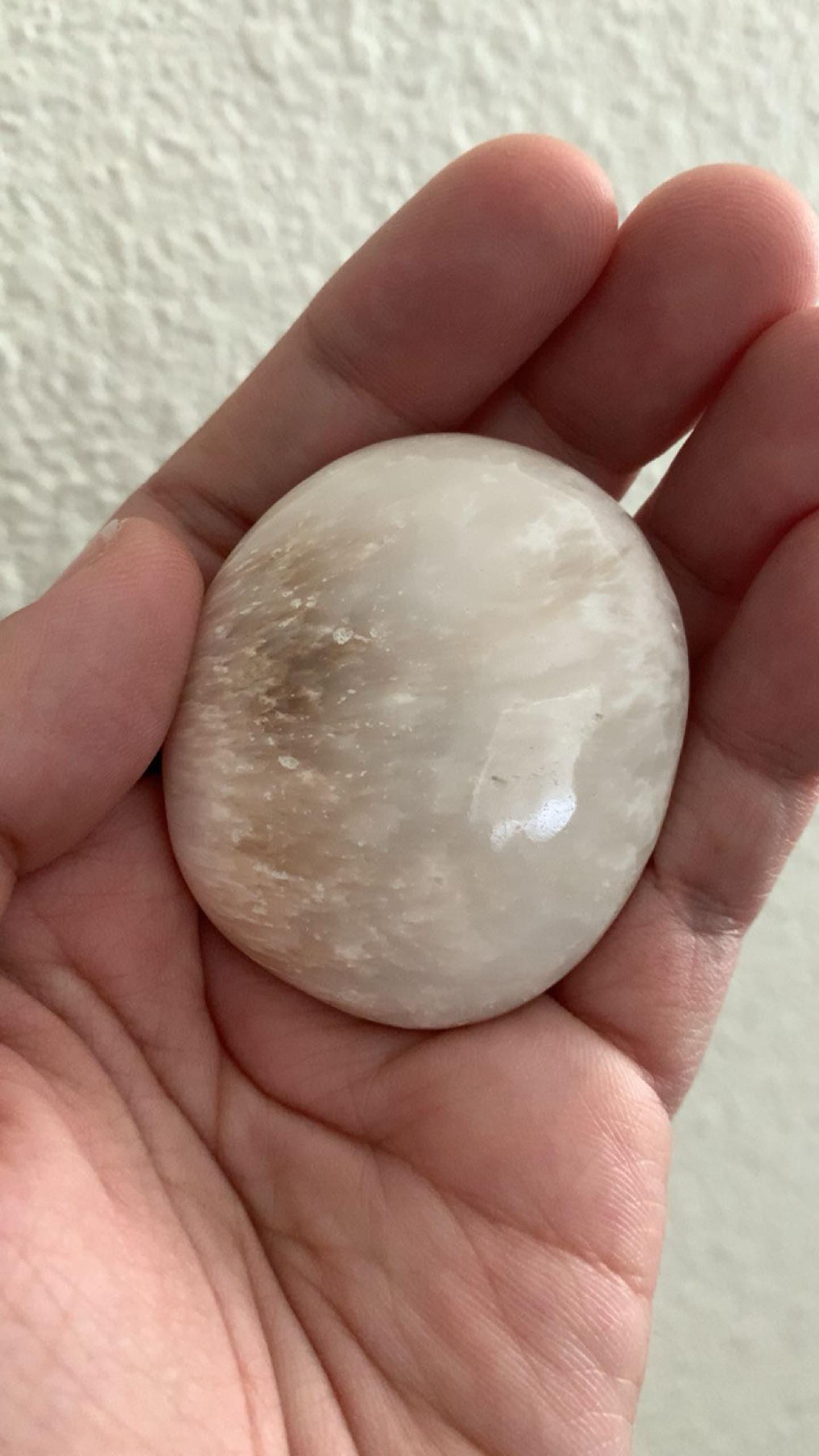 I actually really love this little Scolecite Palmstone they gave me. It’s a of a good shape and smoothness rate even though it’s considered a grade B in terms of quality. It’s just what I expected, from the adorable sizing to the coloration ratio on both sides. It’s perfect for me! I’m a recurring customer and I shall surely be back for more.