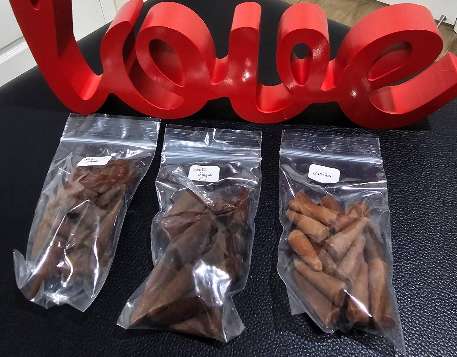 Huge range to choose from. BUY 2 GET 1 FREE! - For every 2 packs of 20 you place in your cart we will add an extra pack of 20 when we ship - no charge! Pay for 40 cones and get 60! You can add a note with your requested scents or we will choose for you if you do not add a note to the order. You can repeat this promotion as many times as you need. Example - order 4 lots of 20 and we will send another 2 lots of 20 free!