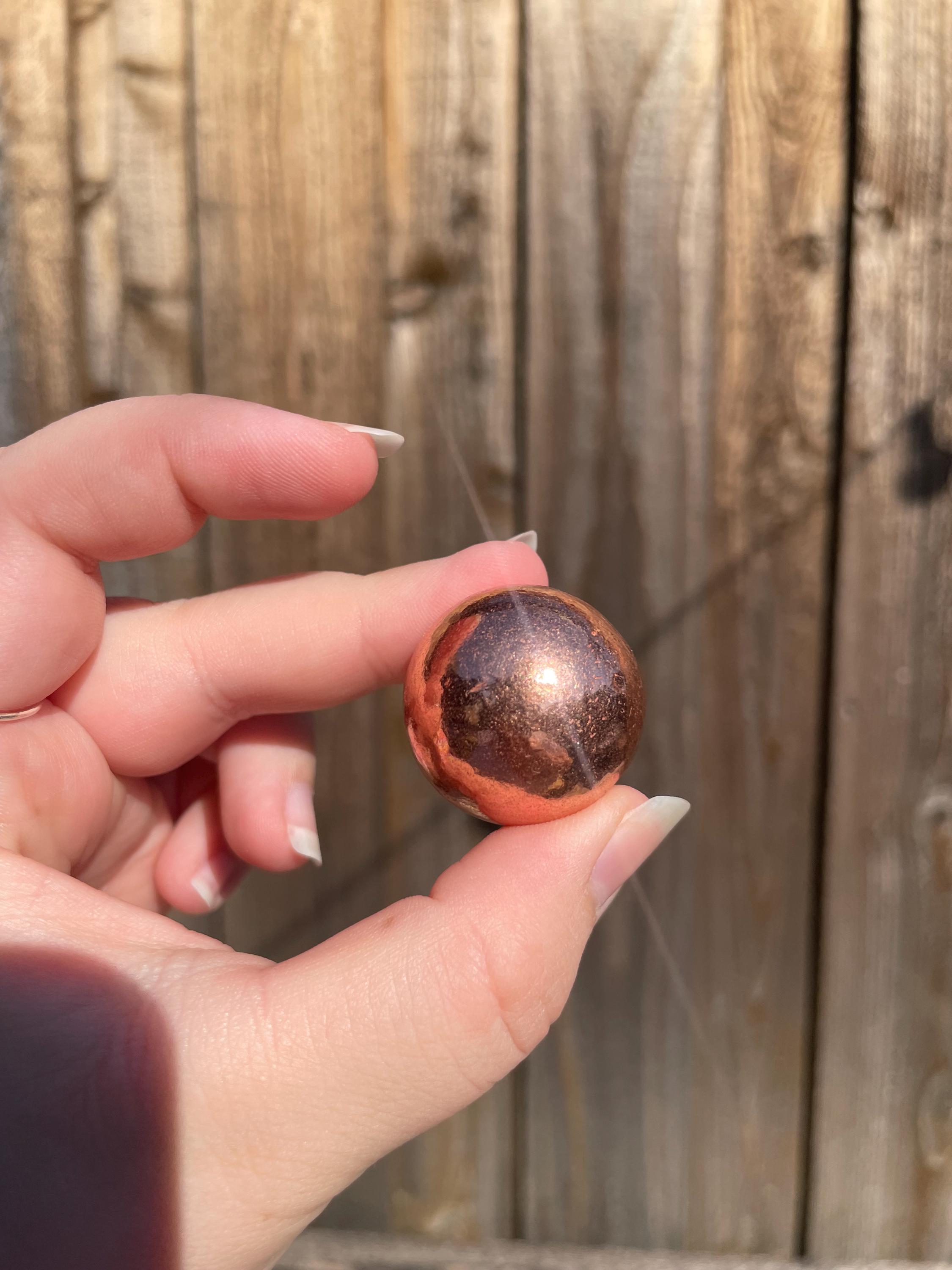 The copper sphere is just what I was hoping it would be based on the pictures and description. It shipped quickly and arrived well protected.
