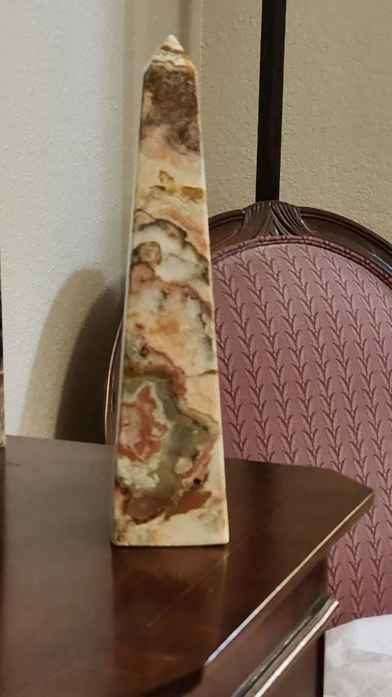 Each Obelisk is unique so do expect variance in coloration from piece to piece. Dimensions are approximate and will vary slightly. Sale is for 1 single piece selected at random at time of shipment.