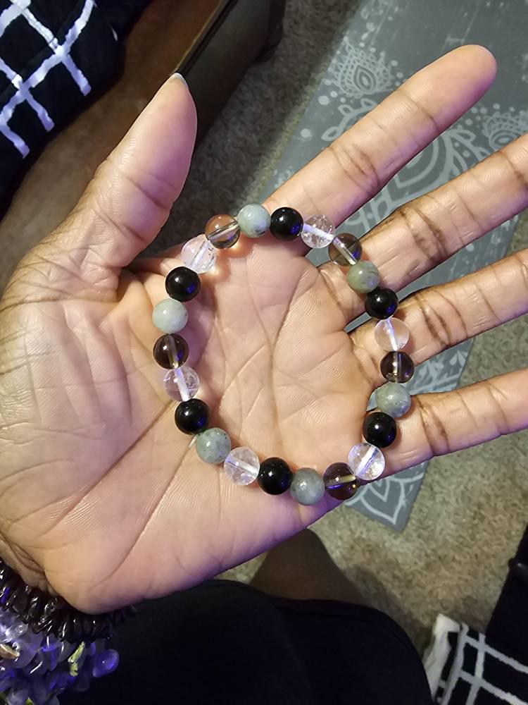 Carefully selected Crystal Beads associated with the Sagittarius Zodiac Sign. These handmade beautiful bracelets are made with Black Obsidian, Labradorite, Smoky Quartz and Clear Quartz beads. 8 mm thick beads on a stretchable bracelet, fits most wrists. About 7.5" in size. Here's a little bit about each Gemstone -