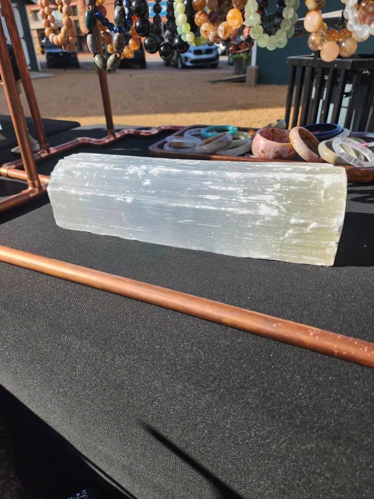 ENORMOUS Selenite Logs! These incredible specimens are amazing statement pieces! Full of Energy and the wonderful properties of Selenite, you wont find a better value for such a large crystal. Sold by weight as each specimen is unique. Lengths will be around 10 - 15" as weight increases. Please understand these are Rough Cut Logs with natural inclusions from where they originated. The ends will show not be perfectly white.