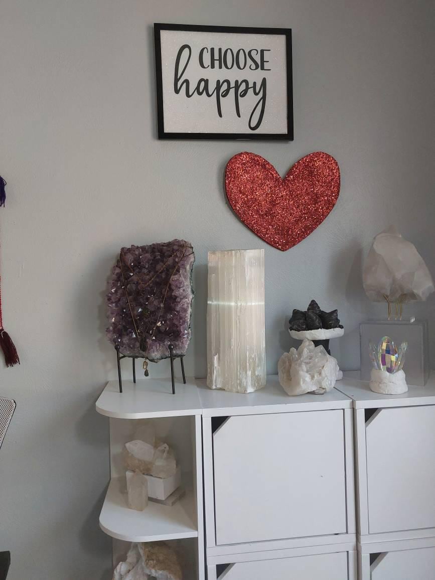 This large piece of selenite is really incredible to look at in a room. It’s really cool to put a light behind it and let it add ambiance to any space. Has a really nice energy to it, too!