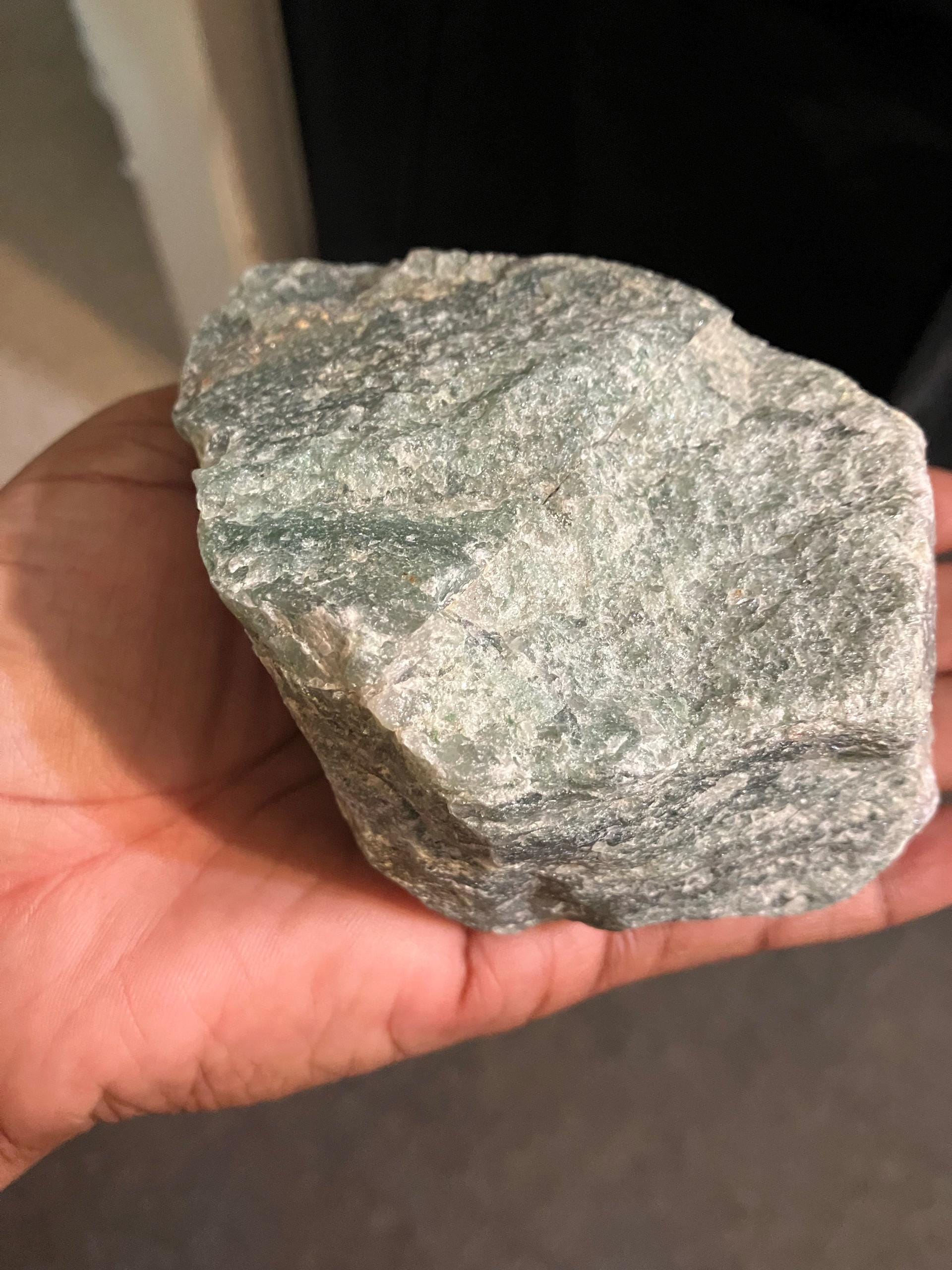 Premium Grade Extra Large Natural Green Aventurine Crystals. Sold by weight but typical size ranges from 2.5" to 4.5" +/- as weight increases. High quality specimens from Brazil. The lead picture shows the stone how you will receive it. The second picture shows the stone wet highlighting its deep green hues.