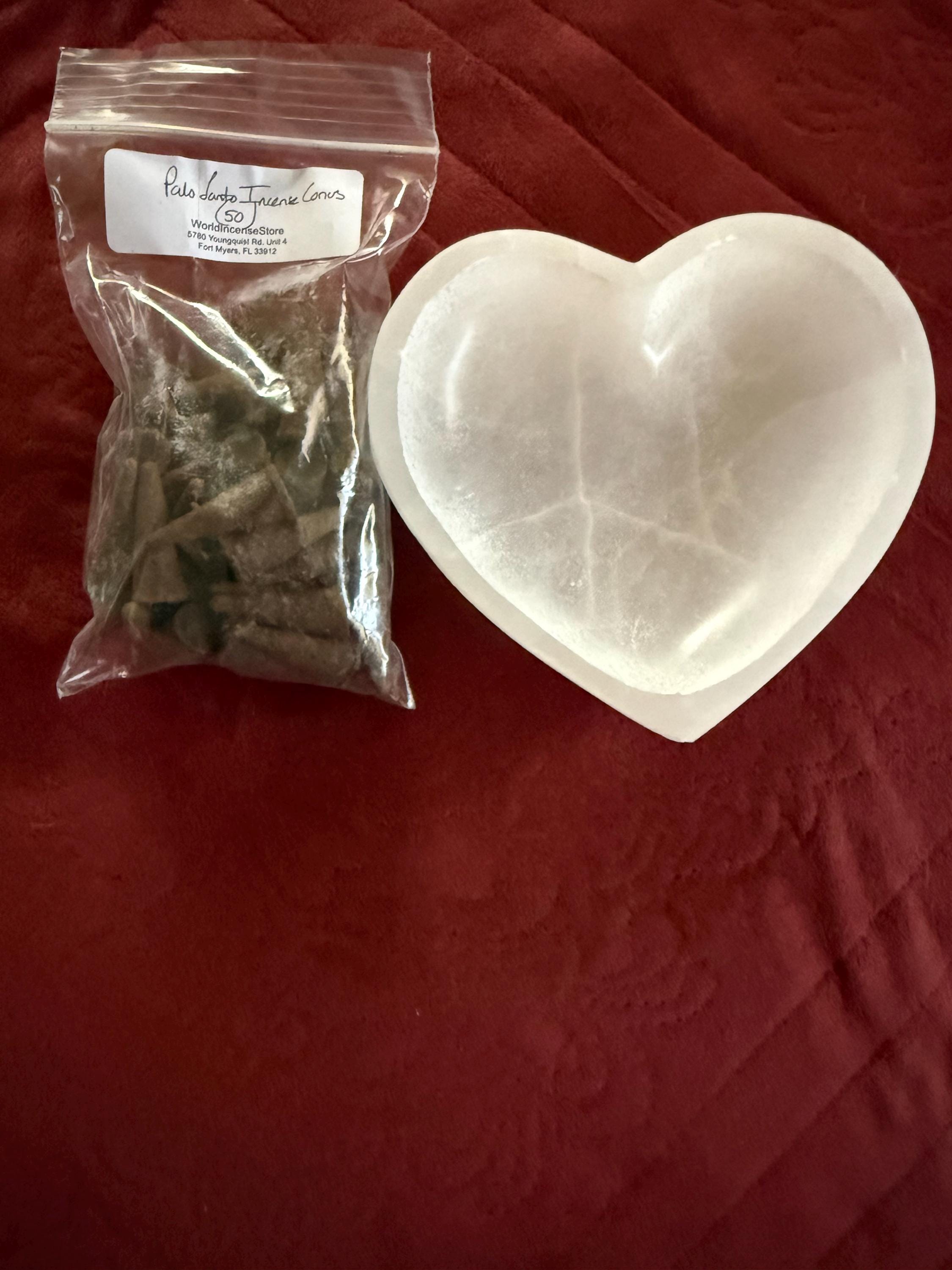 Beautiful Heart shaped Offering Bowls carved from White Selenite. Choose from three sizes; Small 2.75", Medium 4", Large 6" or Jumbo 8" +/-, or a combo pack with 1 of each size!