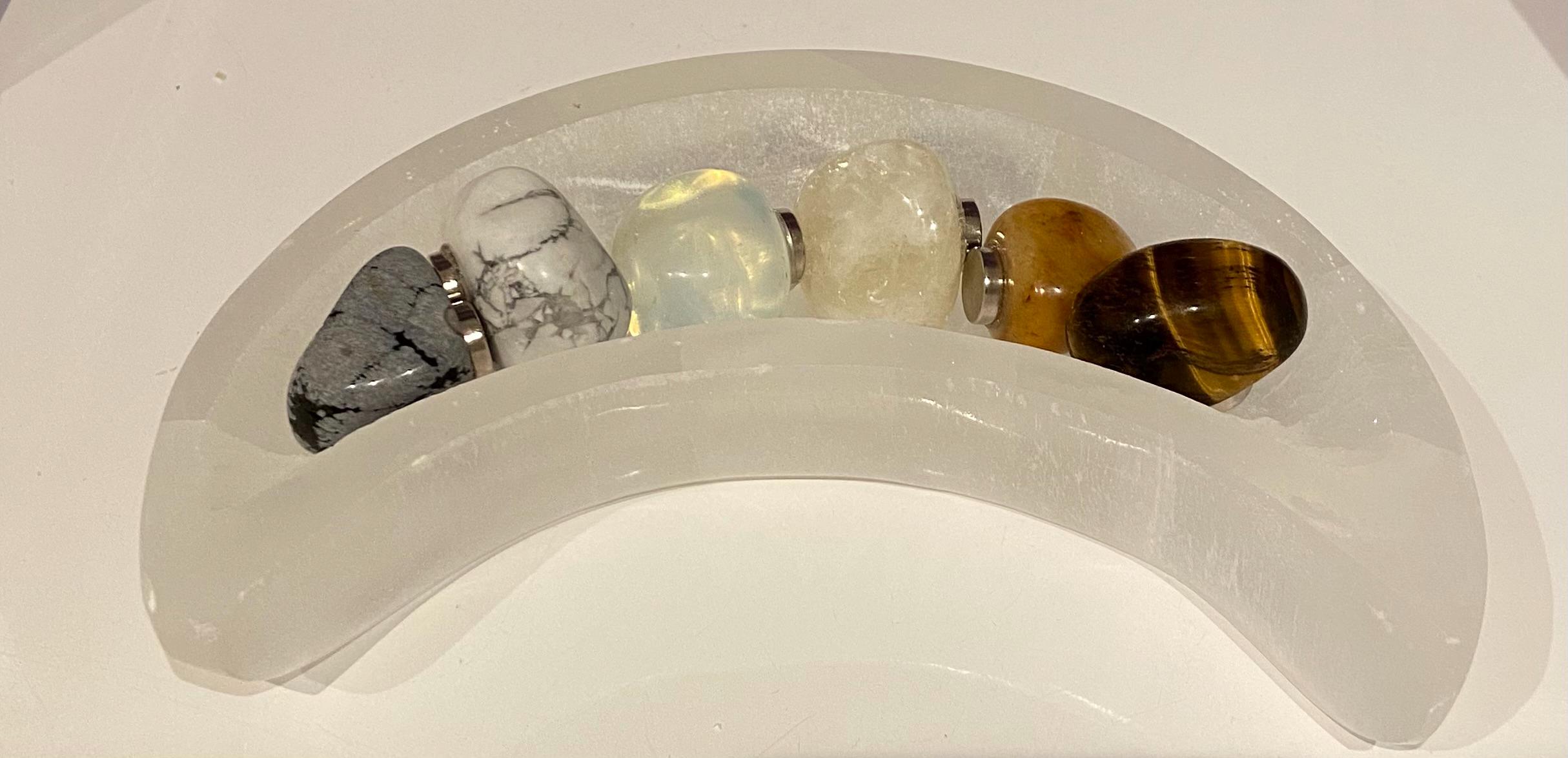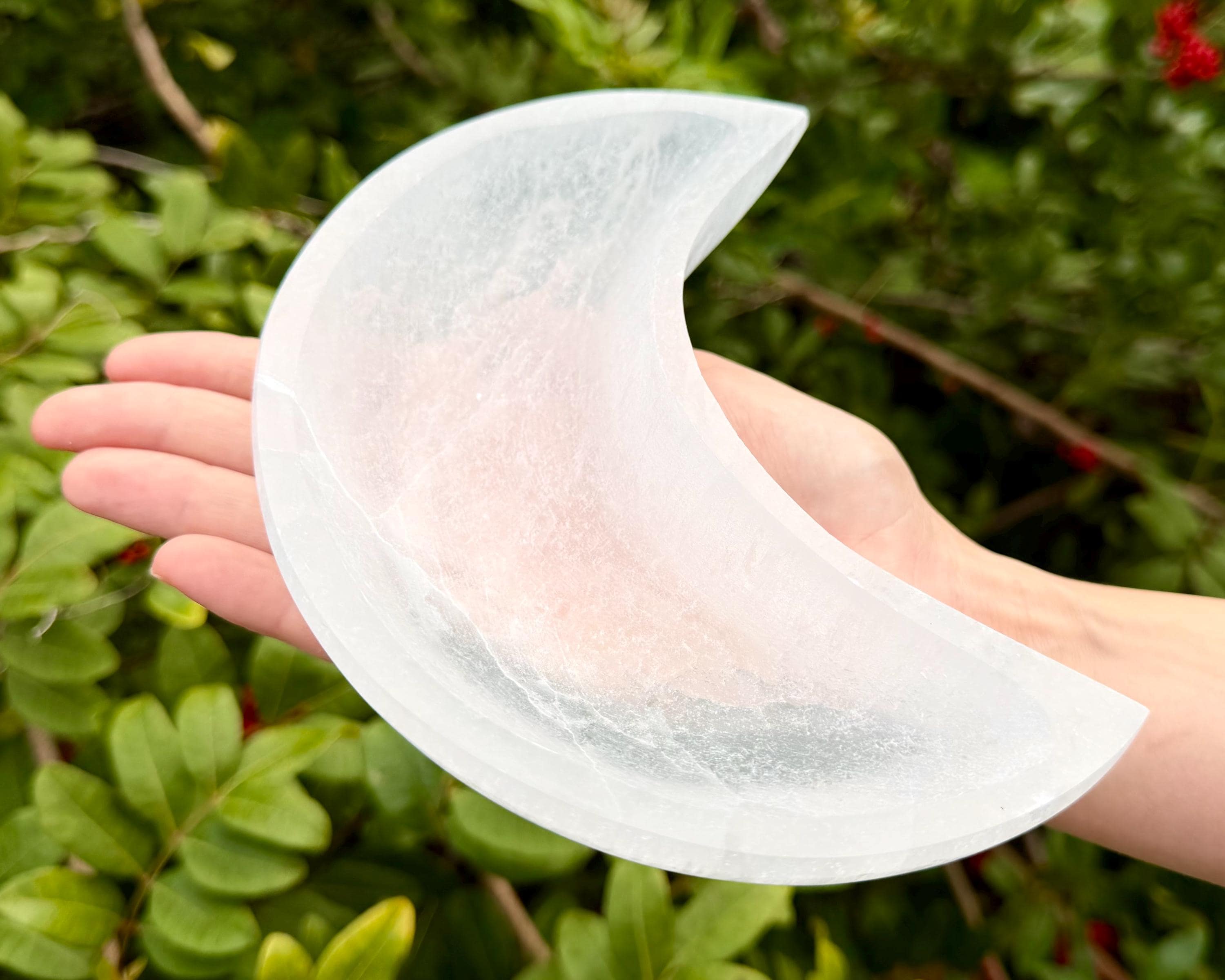These Moon Shape Selenite Bowls are perfect for charging and cleansing your crystals. It will sit perfectly on a nightstand, sacred space or an altar to hold, crystals, jewelry, salt, herbs etc - or simply as a beautiful piece to look at and enjoy! Great for use in Reiki and Crystal Healing.