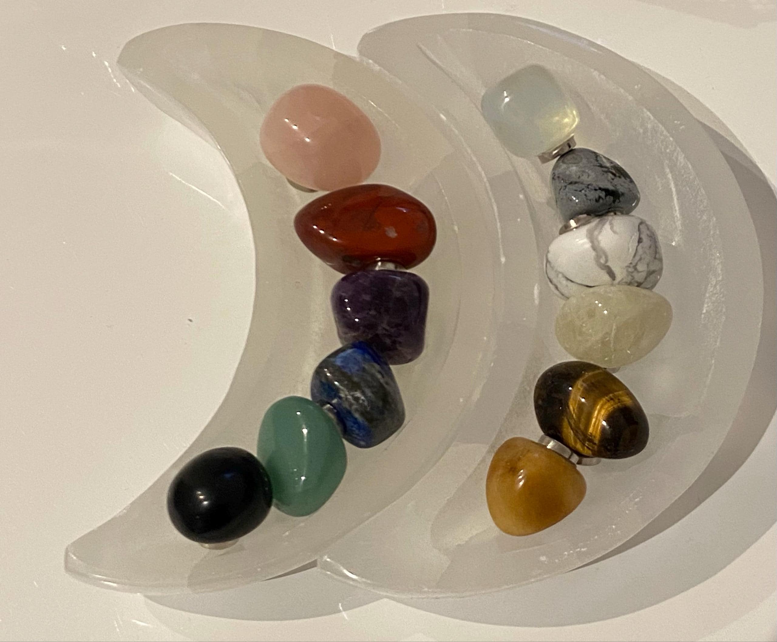 These selenite bowls are the perfect size to hold so many crystals to cleanse and charge. I love the way they stack together. Beautiful!