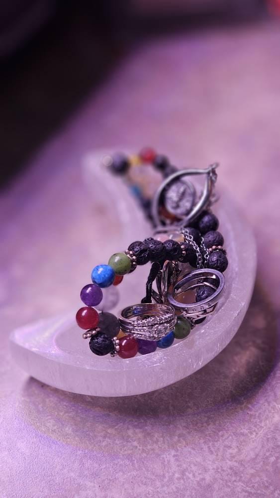 These Moon Shape Selenite Bowls are perfect for charging and cleansing your crystals. It will sit perfectly on a nightstand, sacred space or an altar to hold, crystals, jewelry, salt, herbs etc - or simply as a beautiful piece to look at and enjoy! Great for use in Reiki and Crystal Healing.