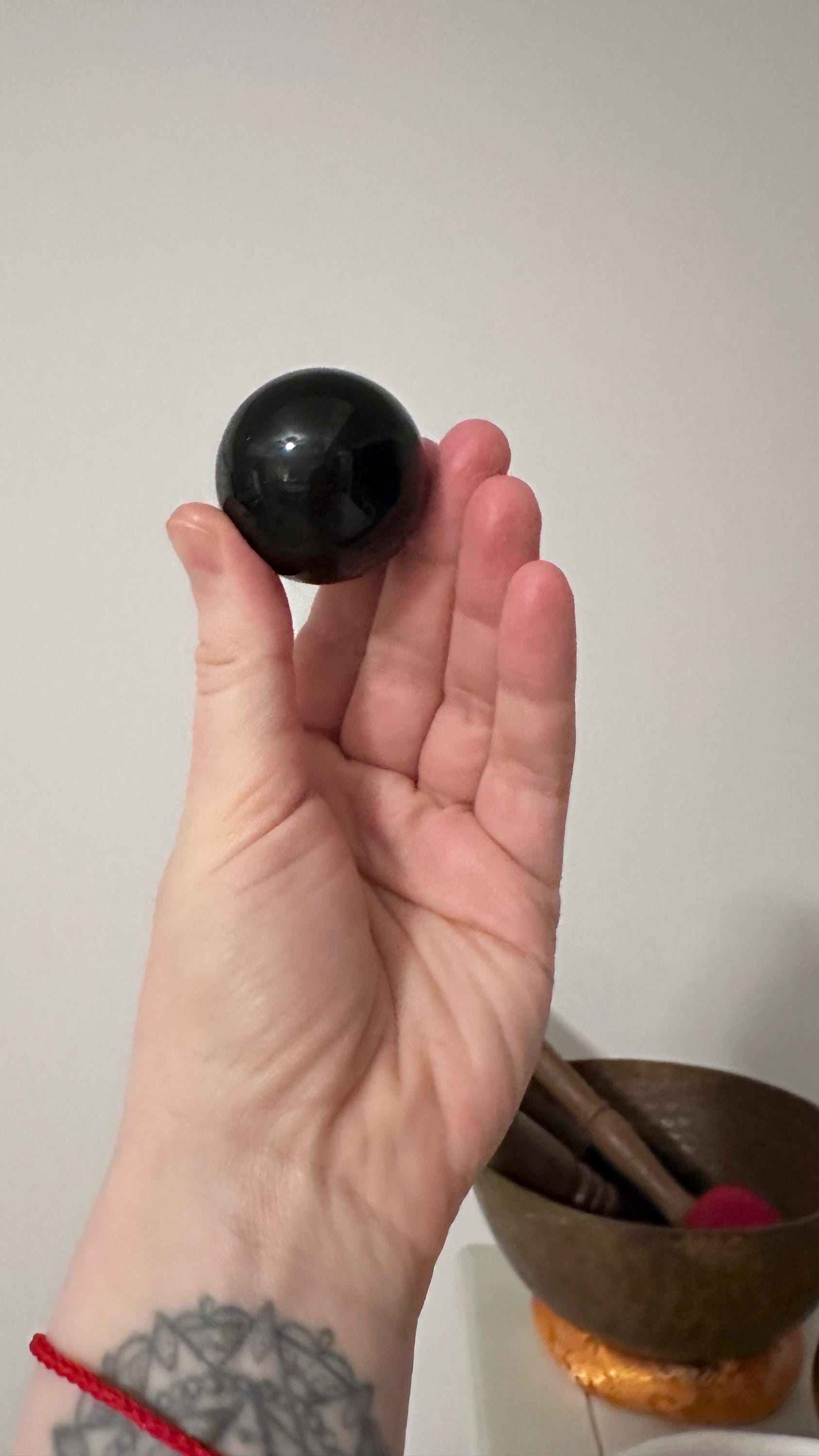 Black crystal sphere - might be obsidian, might be man-made but it is nice and sized as described in the store.