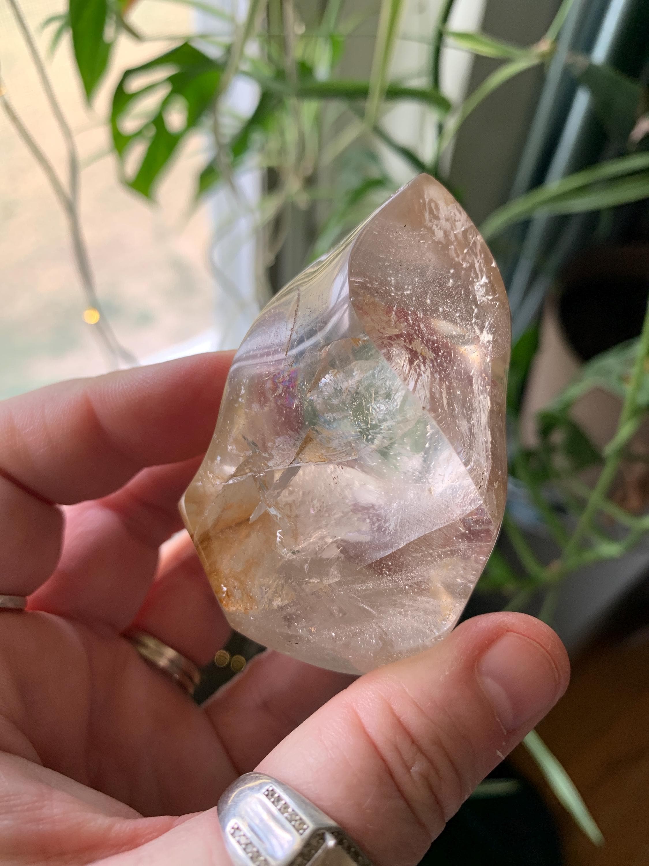 Really nice quartz with nice light refraction and minimal inclusions. Very satisfied with this purchase.