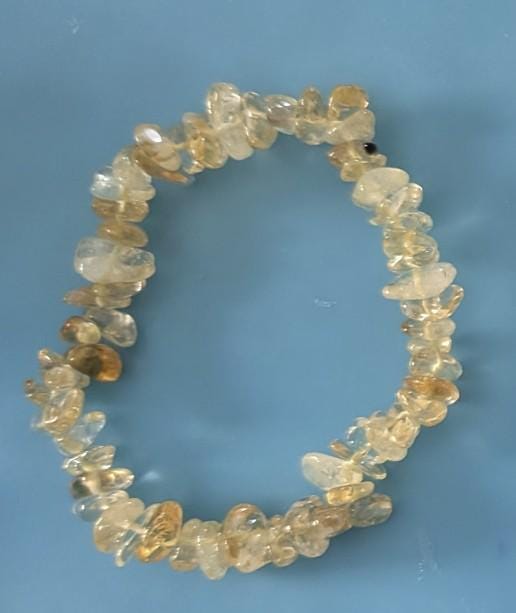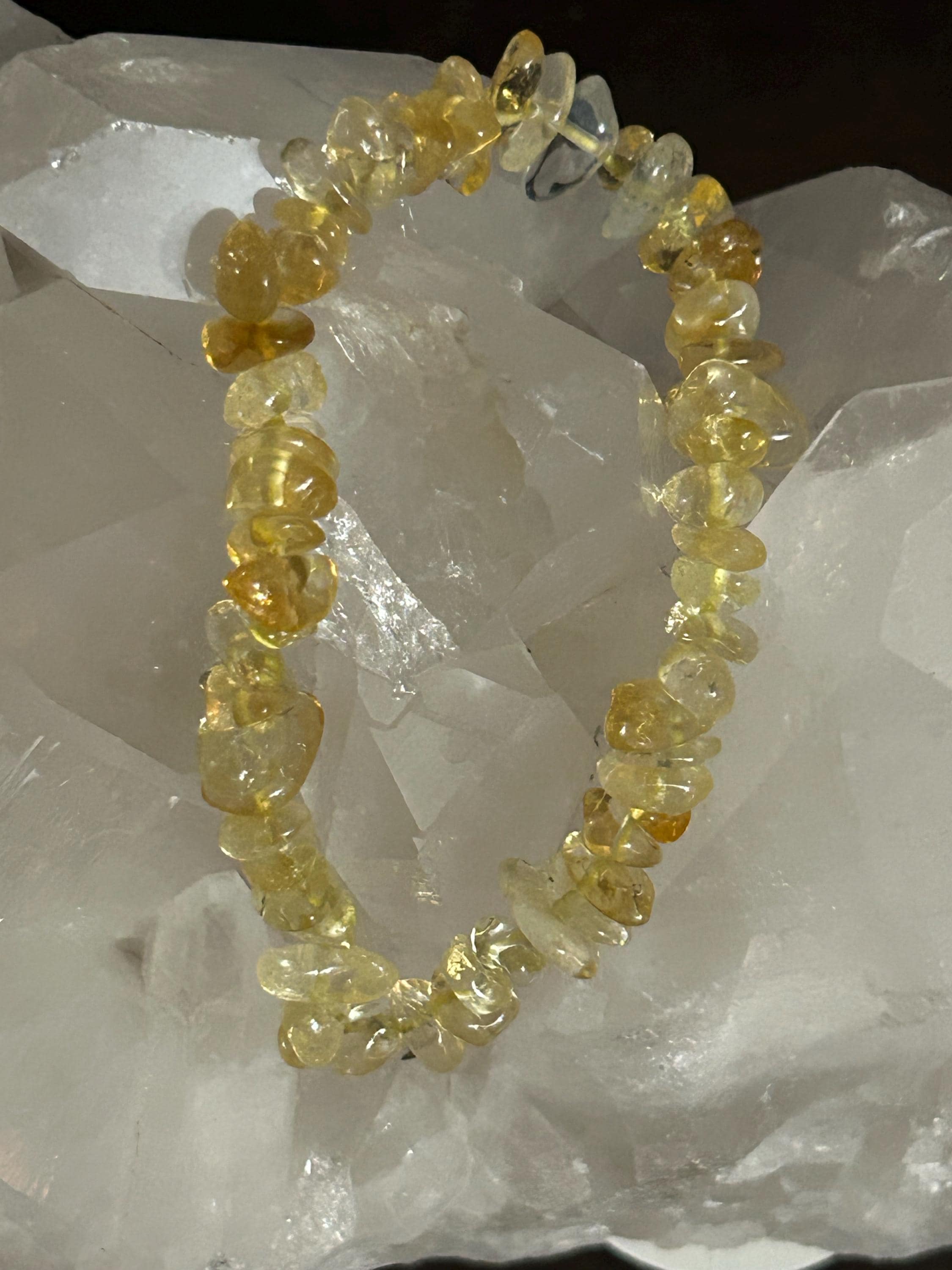 A beautiful bracelet crafted from Citrine Gemstone Chips. Stretchable bracelet, fits most wrists. About 7.5" in size.