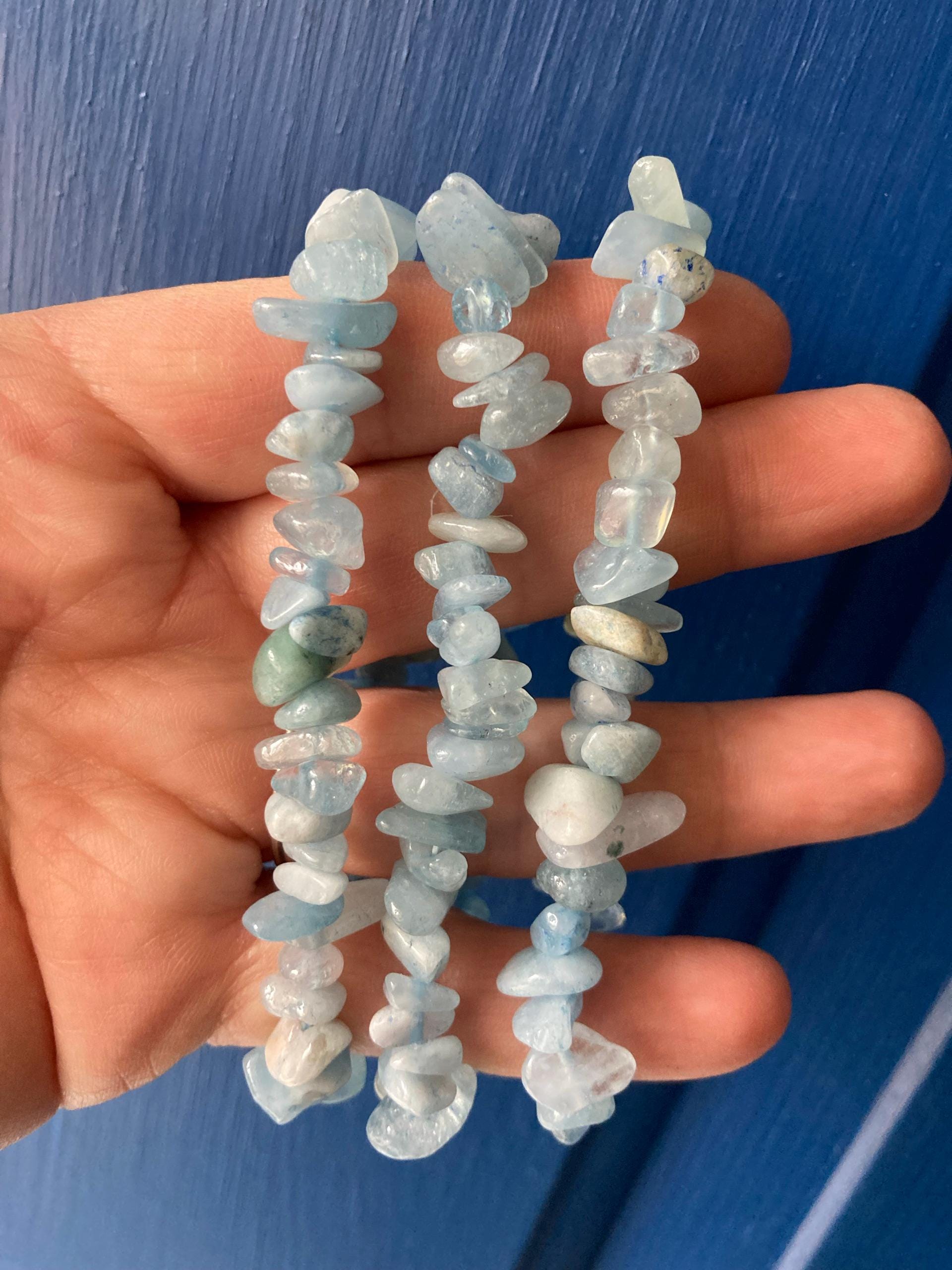 A beautiful bracelet crafted from Aquamarine gemstone chips. Stretchable bracelet, fits most wrists. About 7.5" in size. Great for meditation, crystal healing, Reiki or simply wearing!